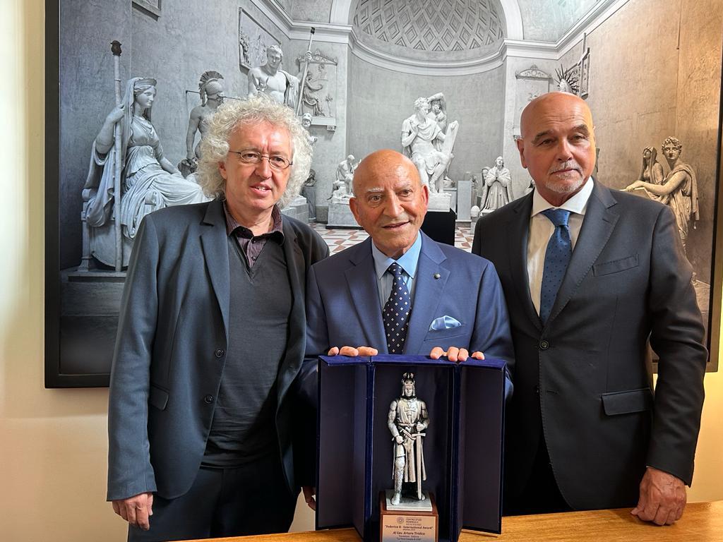 È stato il Presidente del Centro Studi Federico Secondo Giuseppe Di Franco a leggere ufficialmente la motivazione dei tre riconoscimenti solenni Edizione 2023, con lui anche il Presidente del Comitato Scientifico Mario Nanni, scrittore saggista e giornalista politico dell’ANSA per oltre 40 anni, oggi Direttore del magazine cultural-politico Bee Magazine.