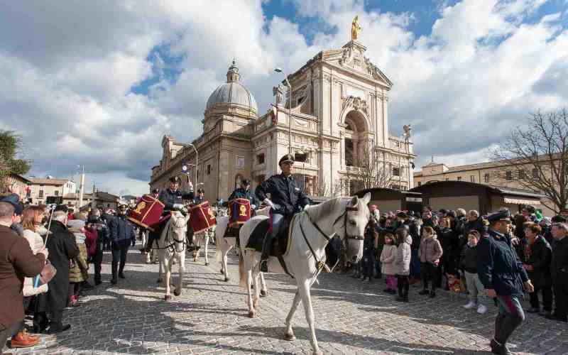 Alle 11.15 la processione solenne per le vie del paese con la Fanfara a cavallo della Polizia di Stato, le autorità e le associazioni; alle 12.30, nel sagrato della Basilica Papale di Santa Maria degli Angeli, la benedizione solenne degli animali e del pane offerto dai Priori Serventi 2024, che sarà distribuito dai Priori Entranti.