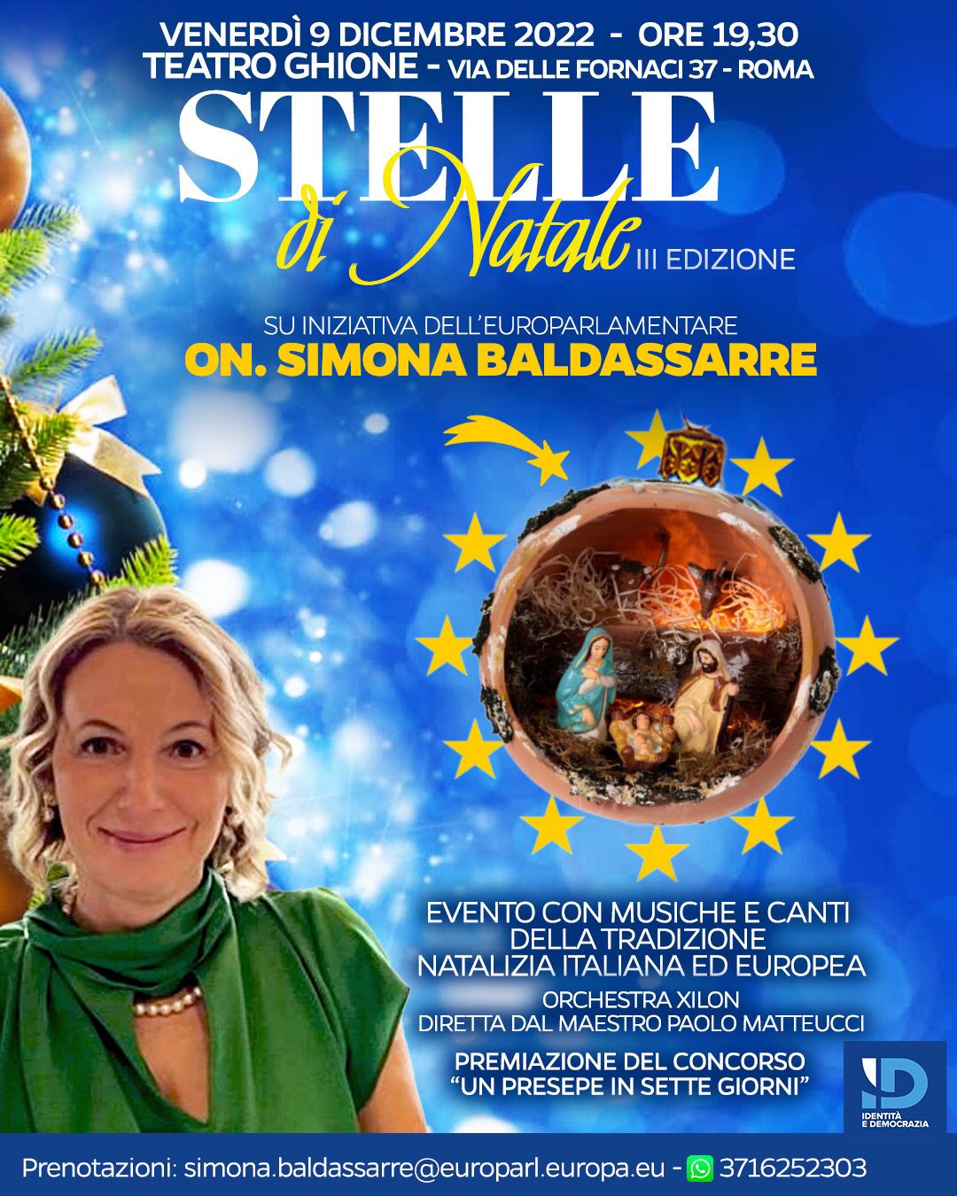 Venerdì 09 dicembre al Teatro Ghione di Roma si svolgerà la III edizione di ‘Stelle di Natale’, un evento che incarna lo spirito natalizio con canti e musiche della tradizione italiana ed europea, organizzato dalla eurodeputata e Responsabile del Dipartimento Famiglia della Lega, Simona Baldassarre.
