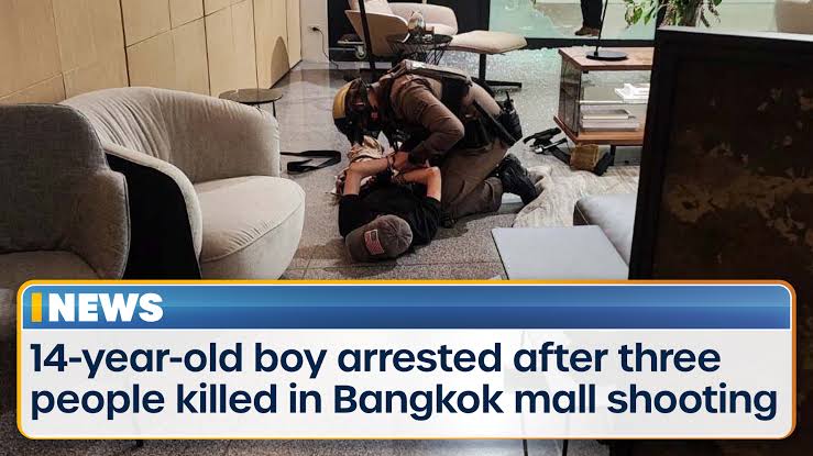 Arrestato un giovane di 14 anni, dopo aver sparato numerosi colpi d'arma da fuoco nella folla di visitatori del Siam Paragon Centre, uno dei più grandi centri commerciali d'Asia La Polizia ritiene che il giovane ragazzo soffra di turbe psichiche.