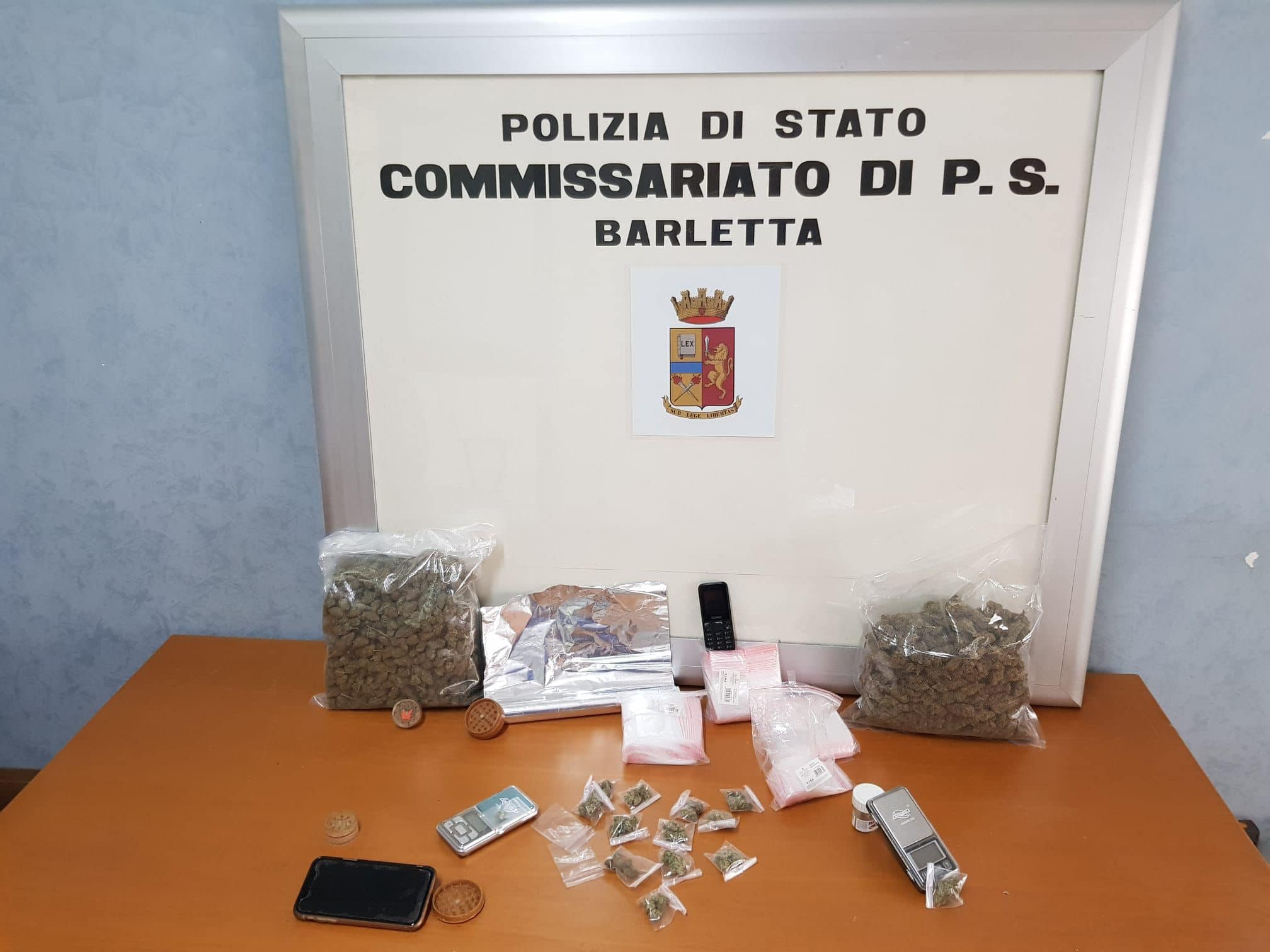 Proseguono a Barletta i servizi mirati per contrastare il fenomeno dello spaccio di sostanze stupefacenti. Nell'ultimo controllo gli agenti del commissariato cittadino hanno notato due giovani a bordo di uno scooter che, ad elevata velocità, sono entrati in una autorimessa, si sono fermati per alcuni minuti per poi allontanarsi nuovamente a bordo dello scooter in direzione centro città.