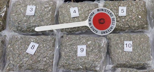 Lo stesso è stato quindi sottoposto a controllo e sorpreso in possesso di quasi 10 kg di marijuana, suddivisa in confezioni sottovuoto, contenute all’interno di una delle due valigie trasportate.