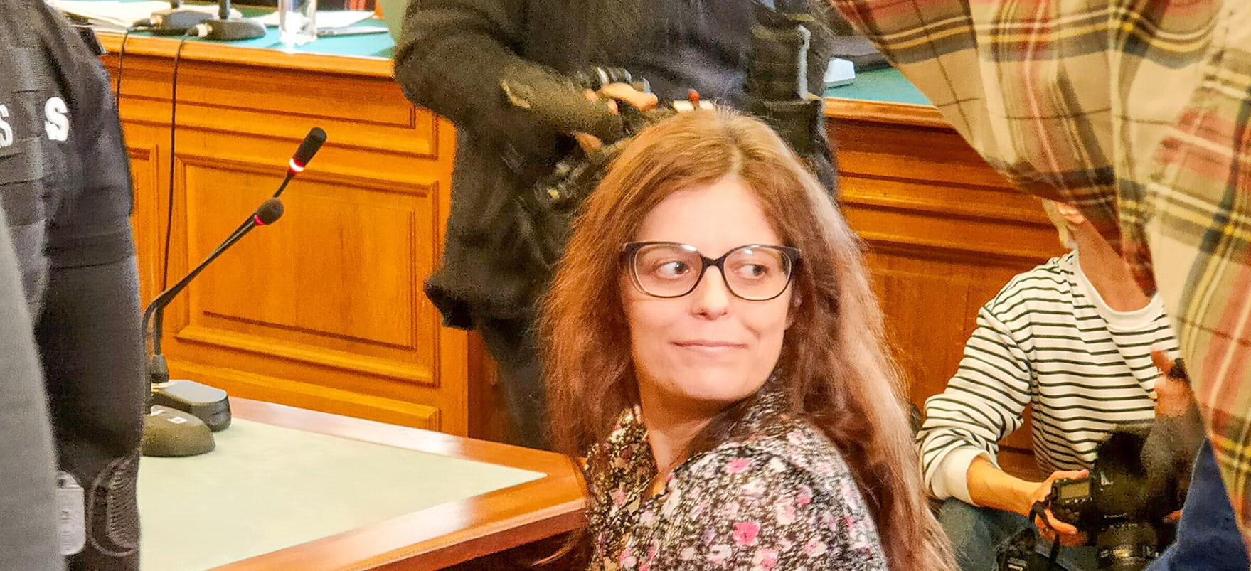 La donna è stata portata in tribunale con le manette ai polsi, i ceppi, le catene alle caviglie e un'altra catena tirata da un agente, come se fosse una specie di guinzaglio, esattamente com'era accaduto il 29 gennaio scorso.