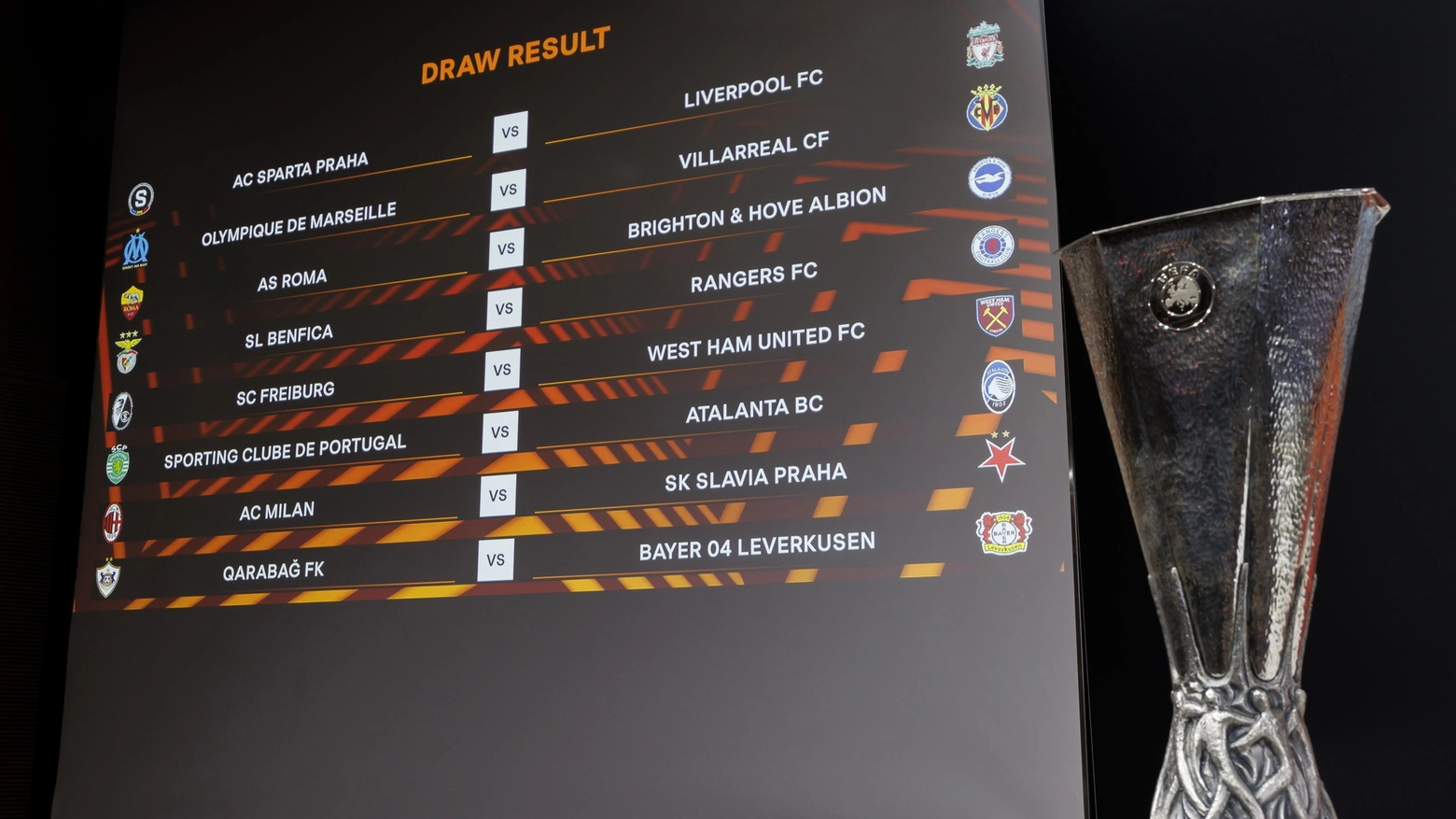 Sorteggio roseo per il Milan, un po' meno per la Roma e l'Atalanta: l'urna di Nyon, oggi, ha stabilito che per gli ottavi di finale di Europa League, i rossoneri evitano il Liverpool e il Bayern Leverkusen e se la vedranno contro i cechi dello Slavia Praga, al momento secondi nel Campionato di casa, che però potrebbero qualificarsi direttamente agli ottavi chiudendo il girone davanti alla Roma, che invece, reduce dalla vittoria ai rigori contro il Feyenoord, trova davanti alla sua strada il Brighton di Roberto De Zerbi.