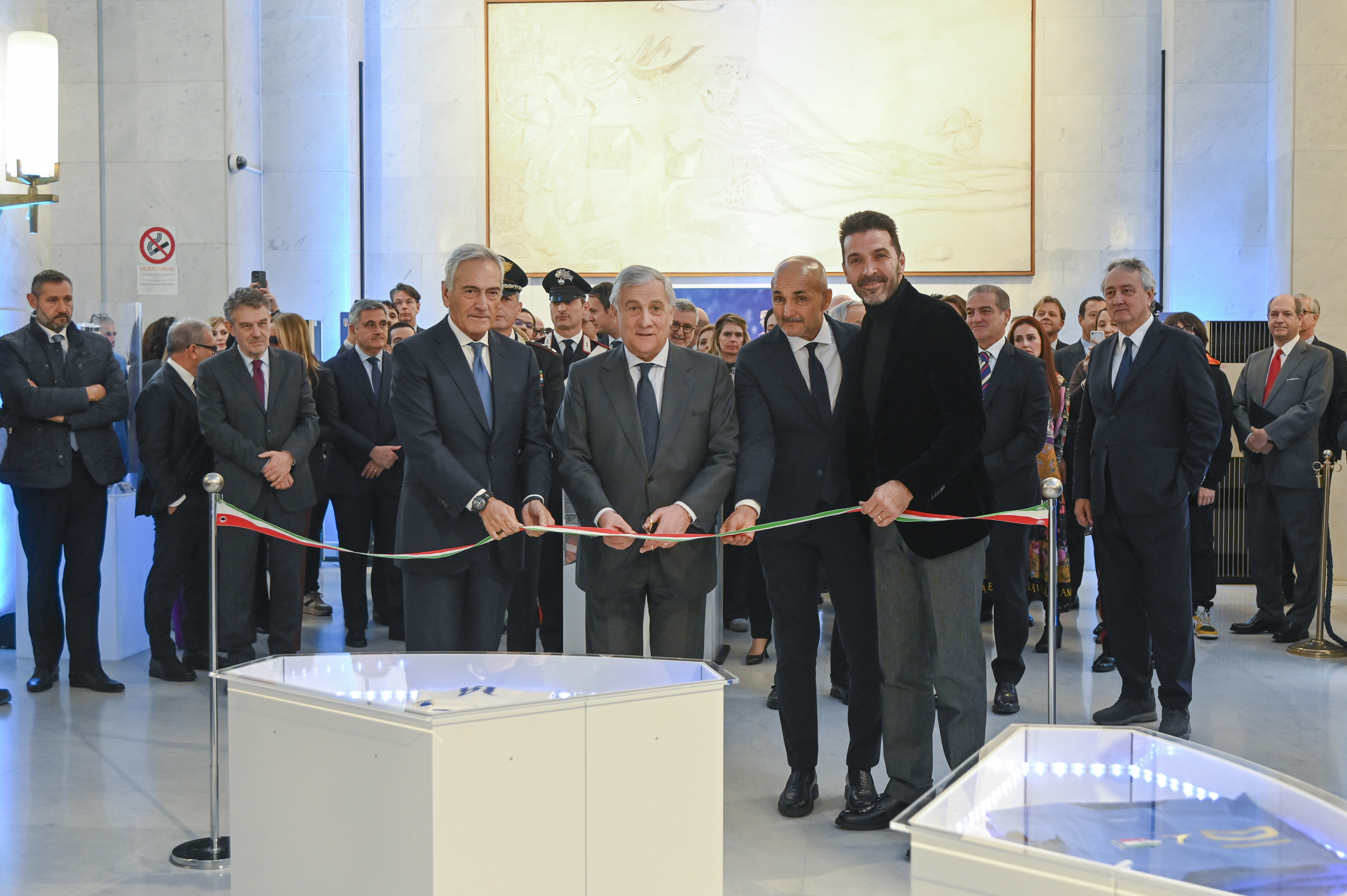 "Il colore azzurro é dominante, unisce e inorgoglisce - ha proseguito Gravina -. La nostra maglia è un'emblema di appartenenza, ogni volta che una delle nostre numerose nazionali scende in campo si rinnova una sorta di rito collettivo, una danza di emozioni che mette insieme milioni di cuori italiani. E lo vediamo soprattutto quando si va all'estero".