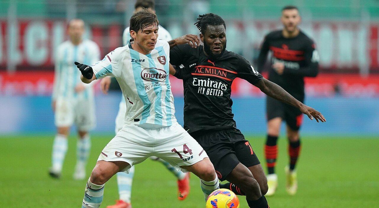 Suggerimento di Bennacer per Brahim Diaz, ma Belec blocca con un'uscita bassa. Ultimi cambi per entrambe le squadre: Kessiè esce fra gli applausi e viene sostituito da Tonali, mentre per la Salernitana esce Ranieri ed entra Jarozynski.