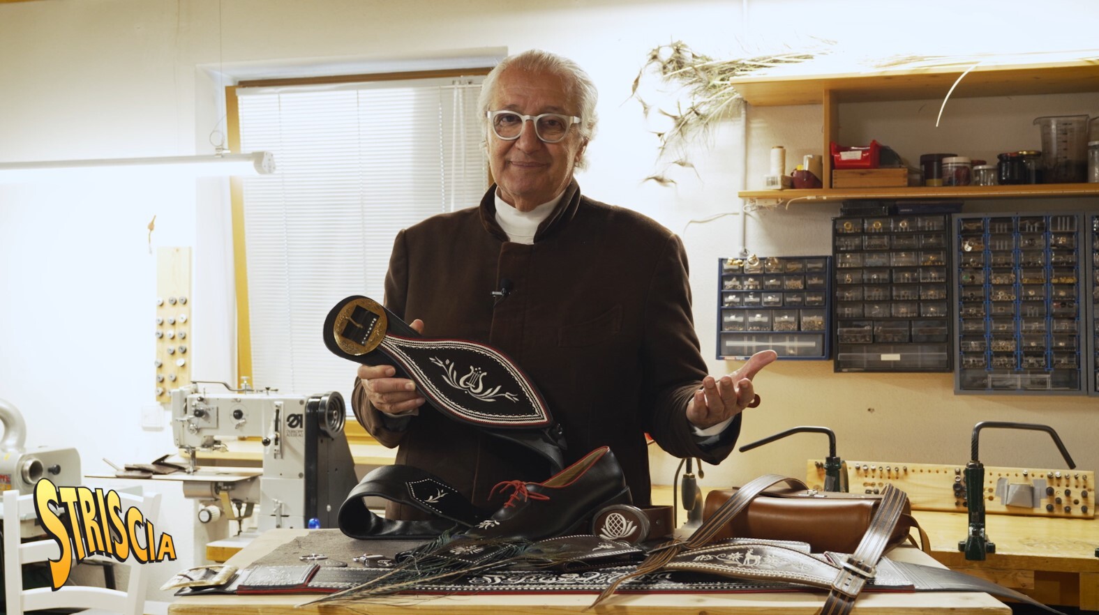 Canale 5, Striscia la Notizia: a "Paesi, Paesaggi..." il ricamo su cuoio con filo di penne di pavone