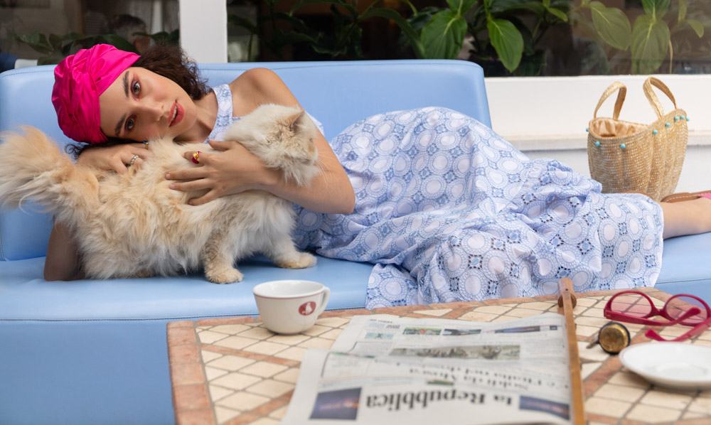 Ogni singola creazione è, infatti, una ironica e non convenzionale interpretazione della moda Caprese anni 50’ che riflette lo stile eccentrico e la libertà di espressione tipica di quell’epoca. Una collezione di capi essenziali concepiti per essere versatili e semplici, pensati per donne moderne, indipendenti, eternamente