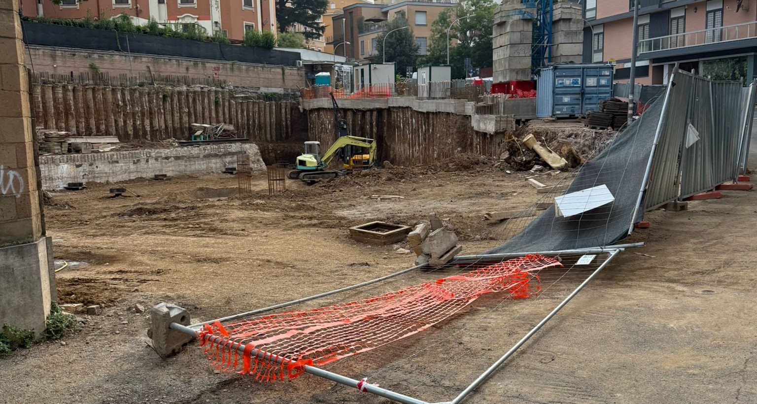 Recinzioni divelte, accesso libero e nessun presidio: il cantiere di via Petrolini continua a far discutere residenti e passanti.