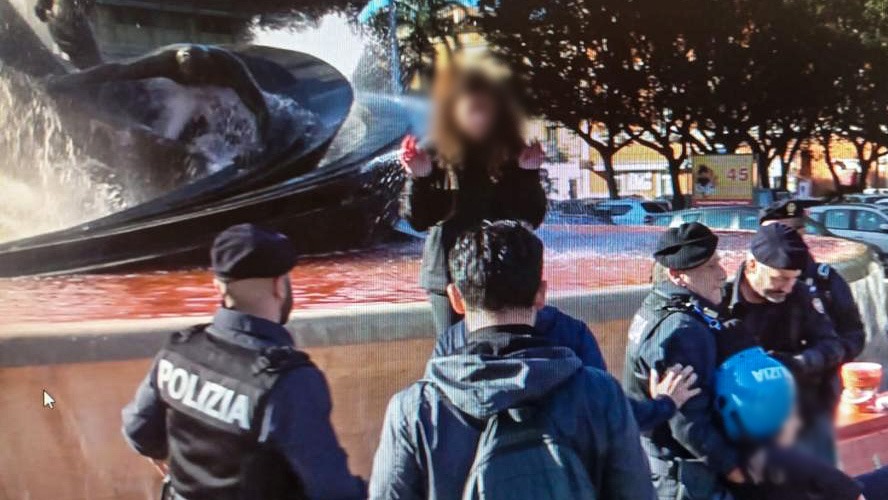 Poco dopo, agenti della Polizia di Stato hanno rimosso il blocco stradale e, anche in questo caso, hanno fermato ed identificato i manifestanti. Nell’immediatezza dei fatti, gli investigatori della Digos hanno effettuato gli accertamenti necessari e, al termine degli adempimenti di rito, hanno denunciato tre persone, una 24enne di Alcamo, una 29enne di Milano ed un 33enne di Vicenza, responsabili di aver tenuto una iniziativa di protesta non autorizzata e caratterizzata dal danneggiamento arrecato alla fontana, versandovi la vernice di colore arancione.