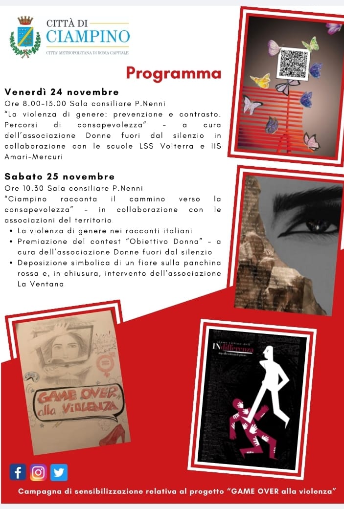 Sabato 25 si terrà l’evento “Ciampino racconta il cammino verso la consapevolezza”; durante la mattinata si alterneranno nella lettura ad alta voce donne delle istituzioni locali e del mondo dell’associazionismo.