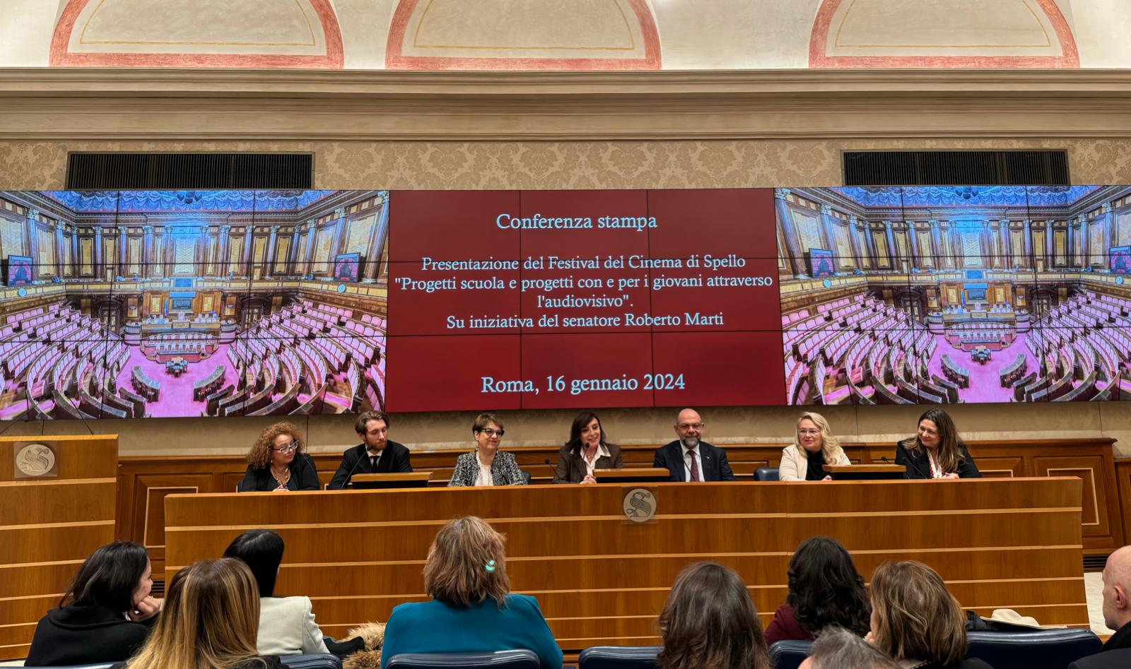 Prosegue il cammino del “Festival del Cinema Città di Spello e dei Borghi Umbri - Le Professioni del Cinema” al fianco dei giovani per avvicinarli sempre di più al mondo dell’audiovisivo. Un cammino iniziato ormai molti anni fa e che si arricchisce in questo 2024 di ulteriori novità. Quelle che la presidente dell’Associazione Culturale di Promozione Sociale “Aurora” Aps, che organizza il Festival, Donatella Cocchini, ha presentato nella mattinata di martedì 16 gennaio in Senato. L’evento dal titolo “Progetti scuola e progetti con e per i giovani attraverso l’audiovisivo” è stato promosso su iniziativa di Valeria Alessandrini, consigliere del Ministro dell’Istruzione e del Merito, Giuseppe Valditara, con l’entusiasmo e l’ospitalità del presidente della VII Commissione del Senator, il Senatore Roberto Marti, che ha messo a disposizione la Sala Nassirya di Palazzo Madama, a Roma. Ad intervenire, oltre al senatore Marti e alla presidente Cocchini, sono stati anche il consigliere del Ministro dell’Istruzione e del Merito, Valeria Alessandrini, l’assessore alla Cultura di Spello, Irene Falcinelli, l’attore Francesco Patanè, testimonial del progetto Agenda 2030 insieme all’attrice Ester Pantano, e le docenti Paola Viscuso ed Elisabetta Carnevali, in rappresentanza rispettivamente dell’Istituto di Istruzione Superiore “Cavour Marconi Pascal” di Perugia e dell’Ipsia “Pertini” di Terni. Nel corso dell’incontro, che ha visto presenti anche diversi professionisti del dietro le quinte - Matteo Bendinelli, Rossella Caggia, Armando Maria Trotta, Andrea Cavalletto e Luca Fabiano Murri - è stato presentato il nuovo direttore artistico del Festival: si tratta del montatore Gianluca Scarpa, che da anni ormai collabora con il Festival nell’ambito dei progetti per e con i ragazzi. Tra le opere filmiche che ha curato figurano “Era d’estate”, “Un giorno all’improvviso”, “Ovunque proteggimi”, “I predatori”, “Amusia”, “Per niente al mondo” ed “Enea”. Svelato, inoltre, il nome di uno dei tanti professionisti che verranno premiati in occasione della prossima edizione del Festival, che si terrà a Spello dall’8 al 17 marzo 2024. Quest’anno, infatti, il “Premio Carlo Savina” per l’eccellenza alla musica verrà assegnato al maestro Fabio Frizzi.