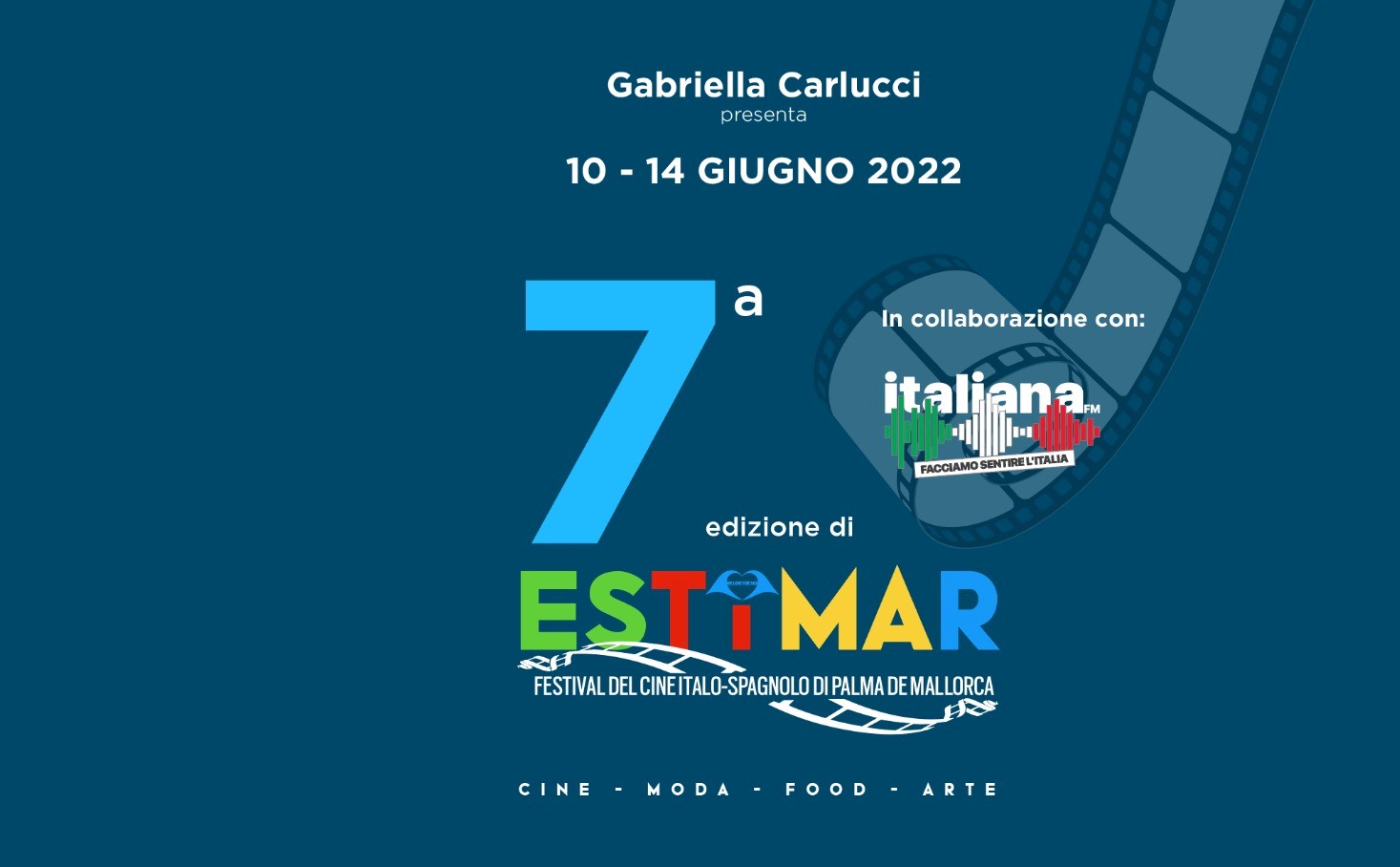 “Estimar 2022 - Il Festival del Cinema Italo-Spagnolo”, ideato ed organizzato da Gabriella Carlucci, giunto alla sua settima edizione e dedicato al cinema italiano ed iberico, si terrà nella splendida cornice di Palma de Mallorca, Isole Baleari, dal 10 al 14 giugno.