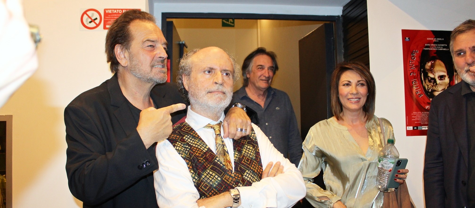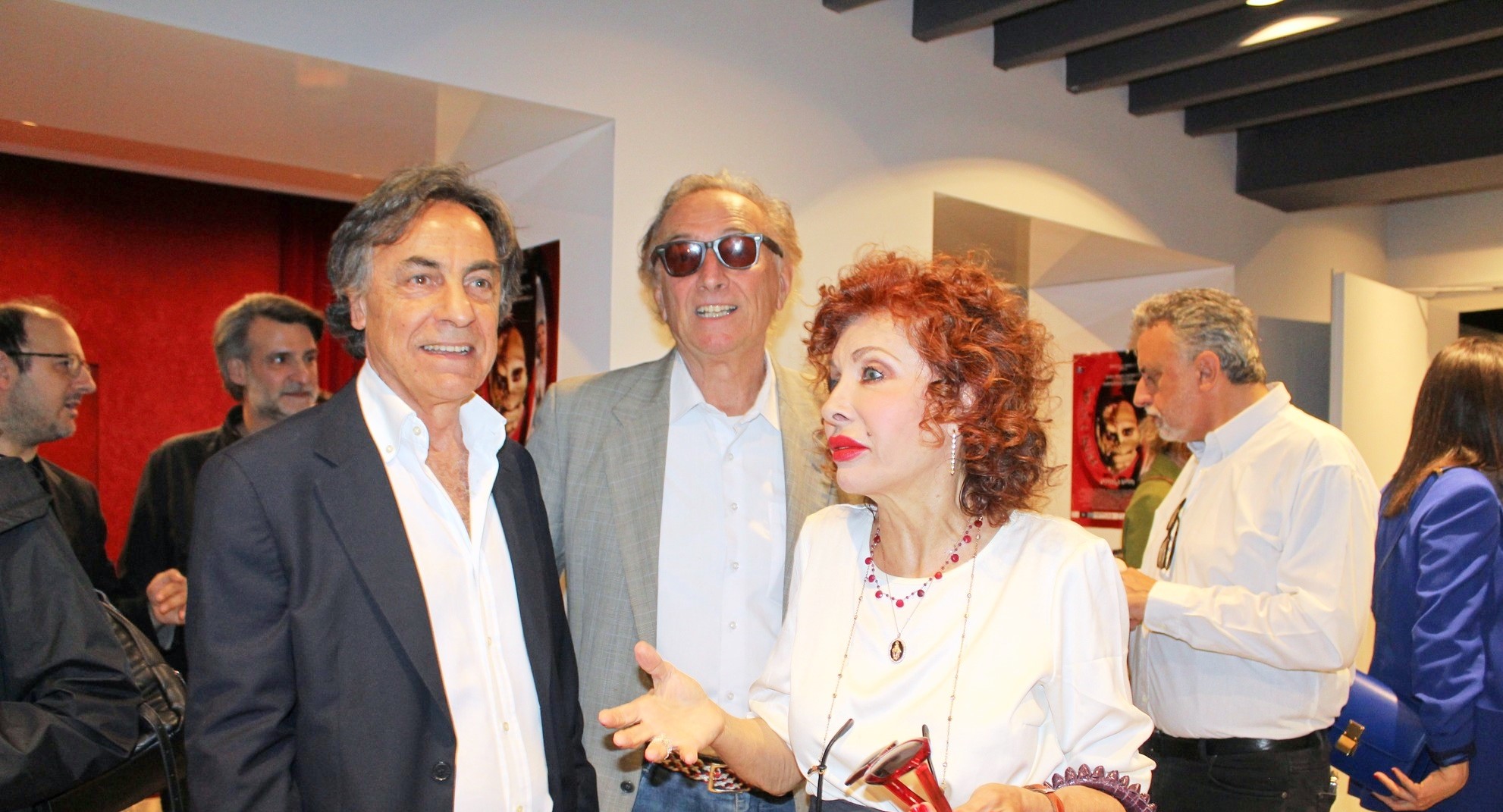 Presenti all’evento, preceduto da un ricchissimo e raffinatissimo buffet, gli altri interpreti del film, a cominciare da Franco Oppini, accompagnato dalla consorte Ada Alberti, astrologa ospite fissa nelle trasmissioni della D’Urso. L’ex della Parietti ha pronunciato parole molto carine verso il regista, dimostrando una grande complicità, con un siparietto simpaticamente ironico che ha divertito tutti.
