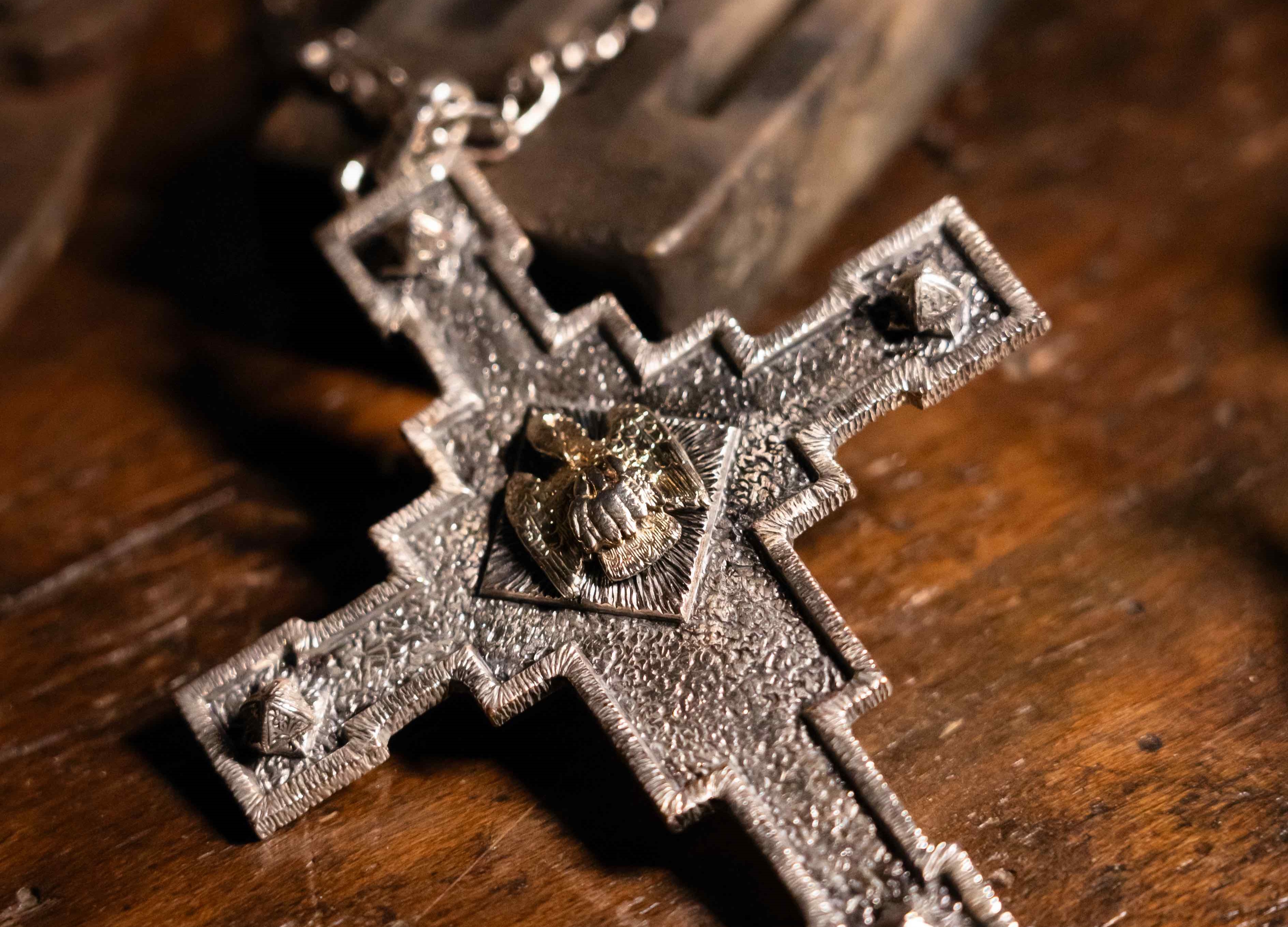 Da tre generazioni, la famiglia Penko produce opere uniche nel cuore di Firenze, una città dove tradizione e arte si intrecciano. Le creazioni per “Conclave”, tra cui anelli, gemelli da polso, spille, catene e croci cardinalizie, sono realizzate con una meticolosa attenzione al contesto storico e culturale di ogni personaggio. Utilizzando metalli preziosi, granati, topazi, lapislazzuli e pietre di luna, la bottega applica tecniche tradizionali fiorentine come il traforo, l’incisione a bulino e la fusione a cera persa, oltre alla loro esclusiva tecnica orafa, il Penkato.