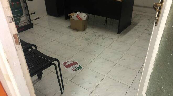 Gli ignoti, inoltre, hanno infranto le finestre del circolo, pezzi di vetro sono caduti all'interno, e un petardo è stato fatto esplodere sulla serranda.