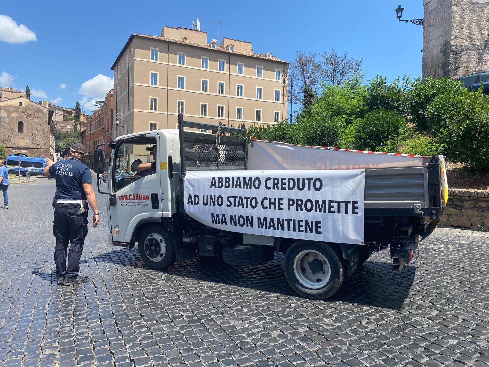 Decine di automezzi sono confluiti nella tarda mattinata, in corteo, a piazza Bocca della Verità dove si è tenuto un sit-in di protesta. Una situazione drammatica quella generata dalla mancata cessione o monetizzazione dei crediti che interessa in totale circa il 10 per cento degli italiani, tra ditte, operai e famiglie che hanno aderito ai vari bonus edilizi.