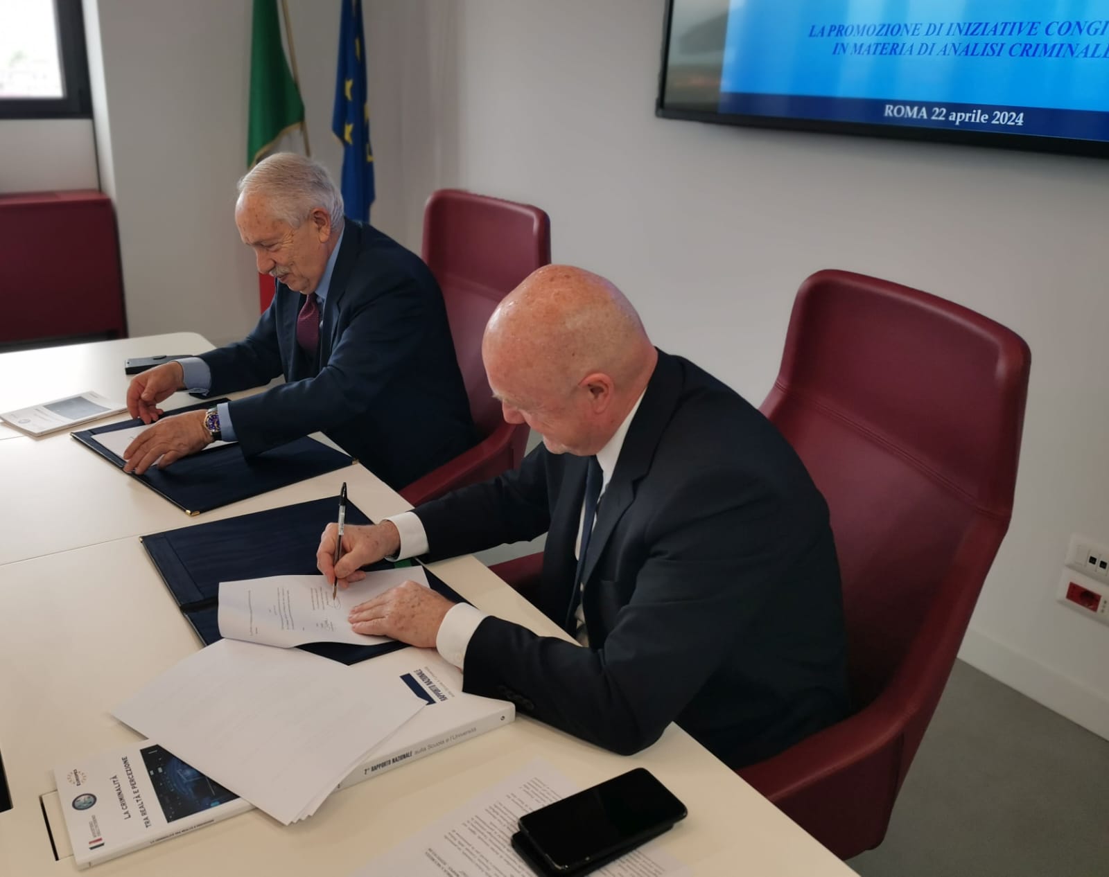 In considerazione degli esiti positivi ottenuti dal progetto, in data odierna, il Vice Direttore Generale della Pubblica Sicurezza-Direttore Centrale della Polizia Criminale Prefetto Raffaele Grassi ed il Presidente Eurispes prof Gian Maria Fara hanno sottoscritto il nuovo protocollo, anch'esso di durata triennale, con l'intento di rafforzare la già proficua collaborazione tra i due Enti. L'evento è stato introdotto da un intervento di saluto e presentazione dell'iniziativa del Direttore del Servizio Analisi Criminale - Dirigente Superiore della Polizia di Stato dott. Stefano Delfini. Il Prefetto Grassi ha sottolineato che la collaborazione istituzionale con Eurispes è particolarmente preziosa poiché consente cli arricchire il patrimonio informativo della Direzione Centrale e approfondire tematiche rispetto alle quali l'Istituto ha sempre mostrato significativa attenzione, inoltre aggiungendo che "il dialogo e l'interazione con gli ambienti della ricerca risultano sempre funzionali all'azione di prevenzione e contrasto ai fenomeni criminali svolta dalle Forze di polizia".