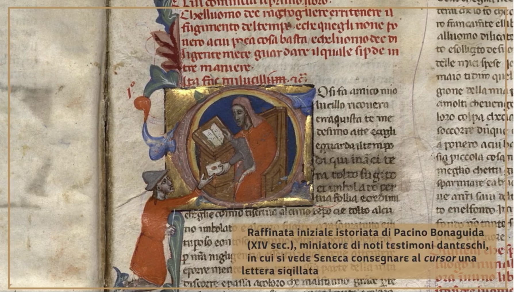 Il terzo manoscritto napoletano Ms. XIV. A. 37 contiene Le lettere a Lucilio di Lucio Anneo Seneca . Si tratta di un volgarizzamento in toscano ricco ed elegante dell’opera morale di Seneca, databile tra il 1320-1340 , e si rifà alla prima traduzione in una lingua moderna dal latino francese di qualche anno prima (1308 e il 1310) delle lettere di Seneca al suo discepolo. Il codice riveste particolare interesse perché presenta una miniatura attribuita da studi recenti alla bottega di Pacino di Bonaguida, importante pittore e miniatore italiano, di scuola giottesca , operante in Firenze a partire dal primo decennio del secolo XIV.