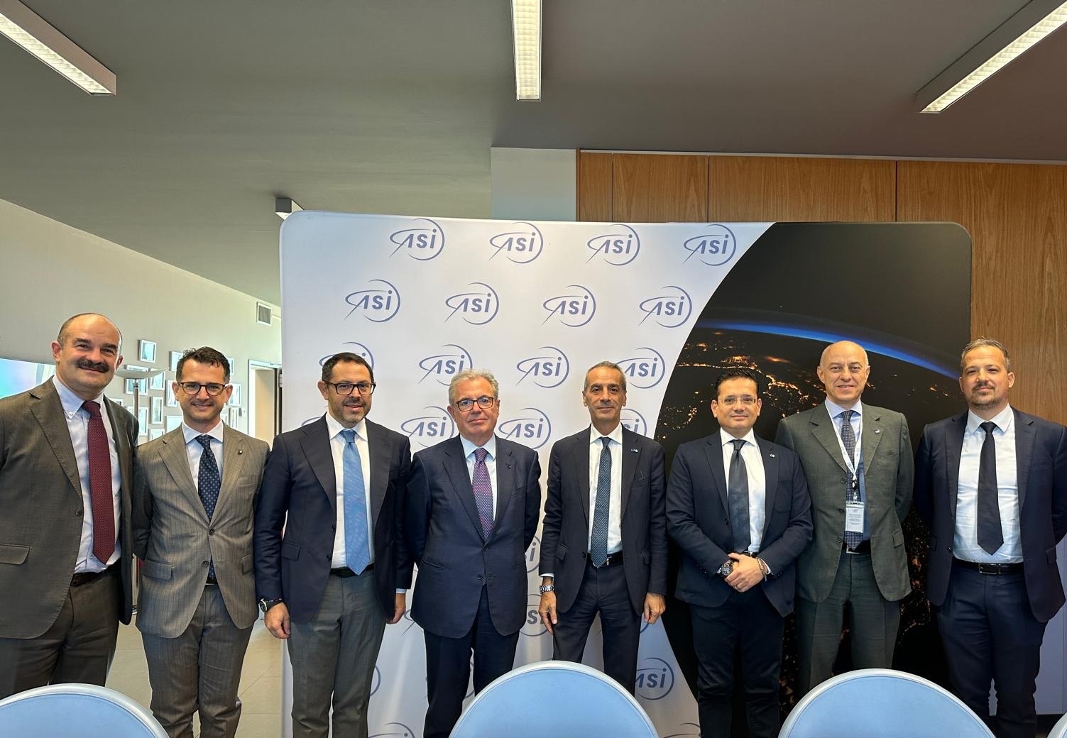 (Foto: Da sinistra Luca Nicoletti, Capo servizio programmi industriali tecnologici e di ricerca ACN; Marcello Albergoni Vice caposervizio Gabinetto ACN; Gianluca Ignagni, Caposervizio Gabinetto ACN; Bruno Frattasi, Direttore generale ACN; Teodoro Valente, Presidente ASI, Luca Salamone, Direttore Generale ASI, Lorenzo Chessa, Direttore Sicurezza, Sistemi Informatici e Digitalizzazione ASI, Alberto Caponi, Responsabile Ufficio Sicurezza e Strategie)