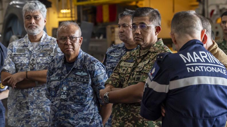 L'operazione Clemenceau 25 arriva nella federazione Malese. Il gruppo di battaglia delle portaerei, denominato GAN, dopo manovre congiunte con le locali forze aeronavali, ha ricevuto la visita delle autorità civili e militari dello stato asiatico, accolte dall'ambasciatore francese in Malesia, il signor Axel Cruau, dal contrammiraglio Jacques Mallard, comandante della GAN, e da Georges-Antoine Florentin, capitano della nave ammiraglia Charles De Gaulle. La delegazione era composta dal ministro della difesa malese YB Dato' Seri Mohamed Khaled bin Nordin, accompagnato dalle autorità civili e militari. Oggi è la volta di Singapore