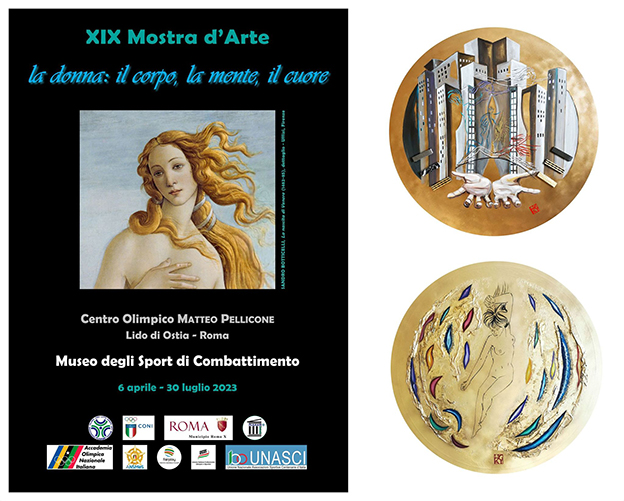 Il primo al Museo FIJLKAM di Ostia (Roma), sul tema “La donna: il corpo, la mente, il cuore”, che verrà inaugurato il 6 aprile, a cui Roberta Gulotta prenderà parte con due opere: “Il Volo di Venere” eseguito con tecnica a tempera acrilica su tela rotonda e vernice dorata ed inserti, del diametro di cm. 100.