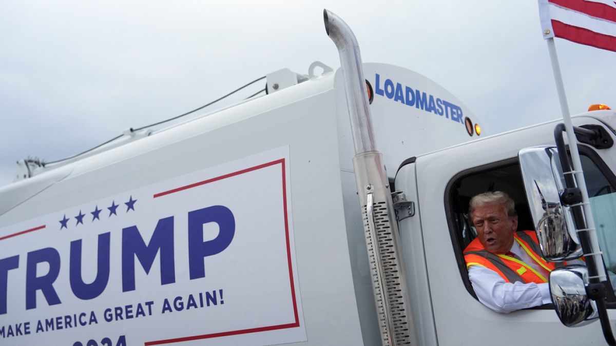 A bordo di un finto camion della raccolta dei rifiuti, addobbato con bandiere americane e targato Trump, il candidato repubblicano si è preso gioco dell'ultima uscita poco felice di Joe Biden che ha definito spazzatura i suoi sostenitori.
