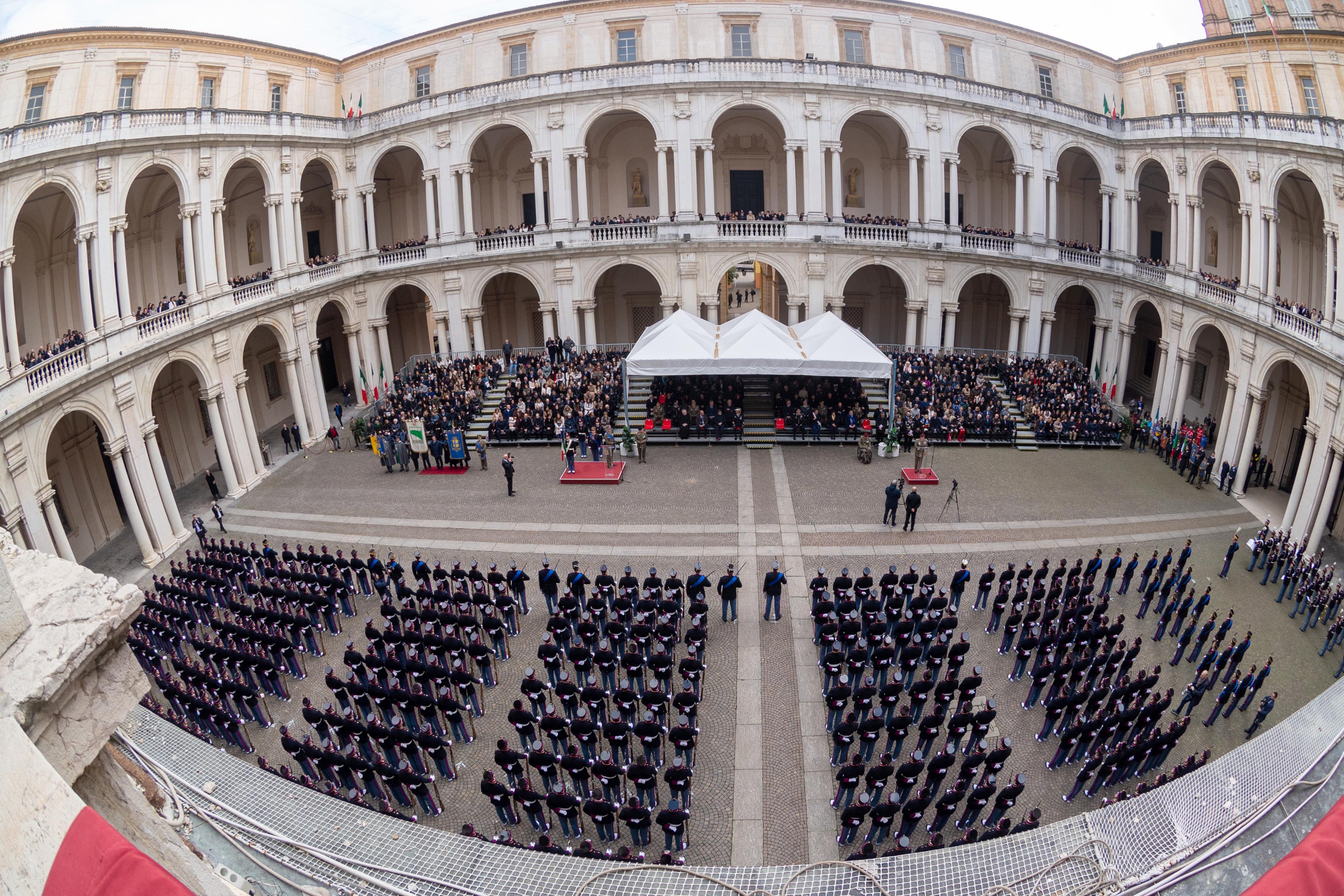 Nel Cortile d'Onore del Palazzo Ducale di Modena, sede dell'Accademia Militare, questa mattina gli Allievi Ufficiali del 205° Corso "Fierezza" hanno giurato in forma solenne, alla presenza del Capo di Stato Maggiore della Difesa, Ammiraglio Giuseppe Cavo Dragone, del Capo di Stato Maggiore dell'Esercito, Generale di Corpo d'Armata Carmine Masiello, e del Comandante Generale dell'Arma dei Carabinieri, Generale di Corpo d'Armata Teo Luzi.