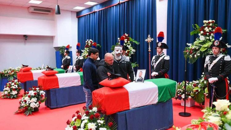 Ad accogliere le tre salme, una piazza gremita di gente e un lungo applauso. Presenti in chiesa i familiari delle vittime, i vertici dell'Arma e colleghi dei deceduti, inclusi alcuni rimasti feriti nell'esplosione.