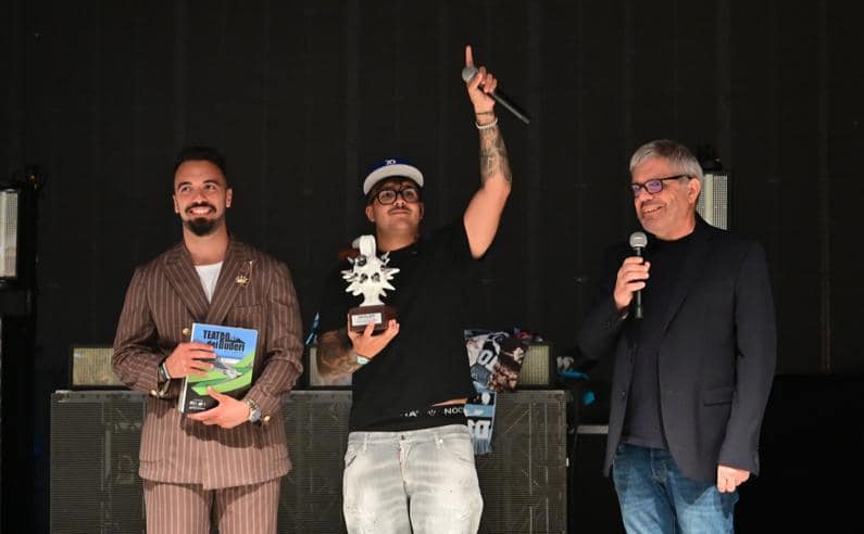 Al ventitreenne rapper napoletano, vero nome Emanuele Palumbo, è stato consegnato il Riccio d’Argento del celebre orafo crotonese Gerardo Sacco, Premio ai Migliori Live dell’Anno nella sezione Nuova Musica d’Autore Italiana,“per i numeri eccezionali di pubblico e il successo del suo live, capace di coinvolgere ed entusiasmare migliaia di giovani.”.