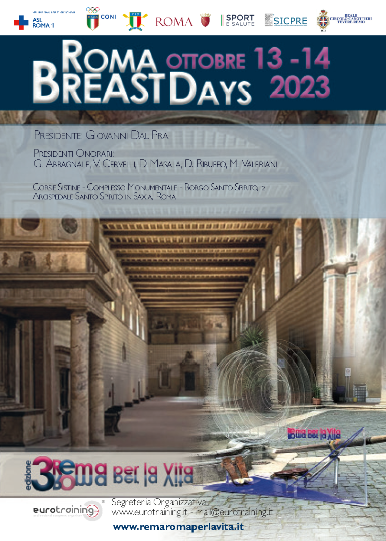 La gara di canottaggio RemaRoma per la Vita si svolgerà in chiusura del Convegno Roma Breast Days che si terrà il 13-14 ottobre presso le antiche Corsie Sistine dell’Arcispedale di Santo Spirito in Saxia, che riunirà medici ed istituzioni per fare il punto sulle cure del tumore al seno.