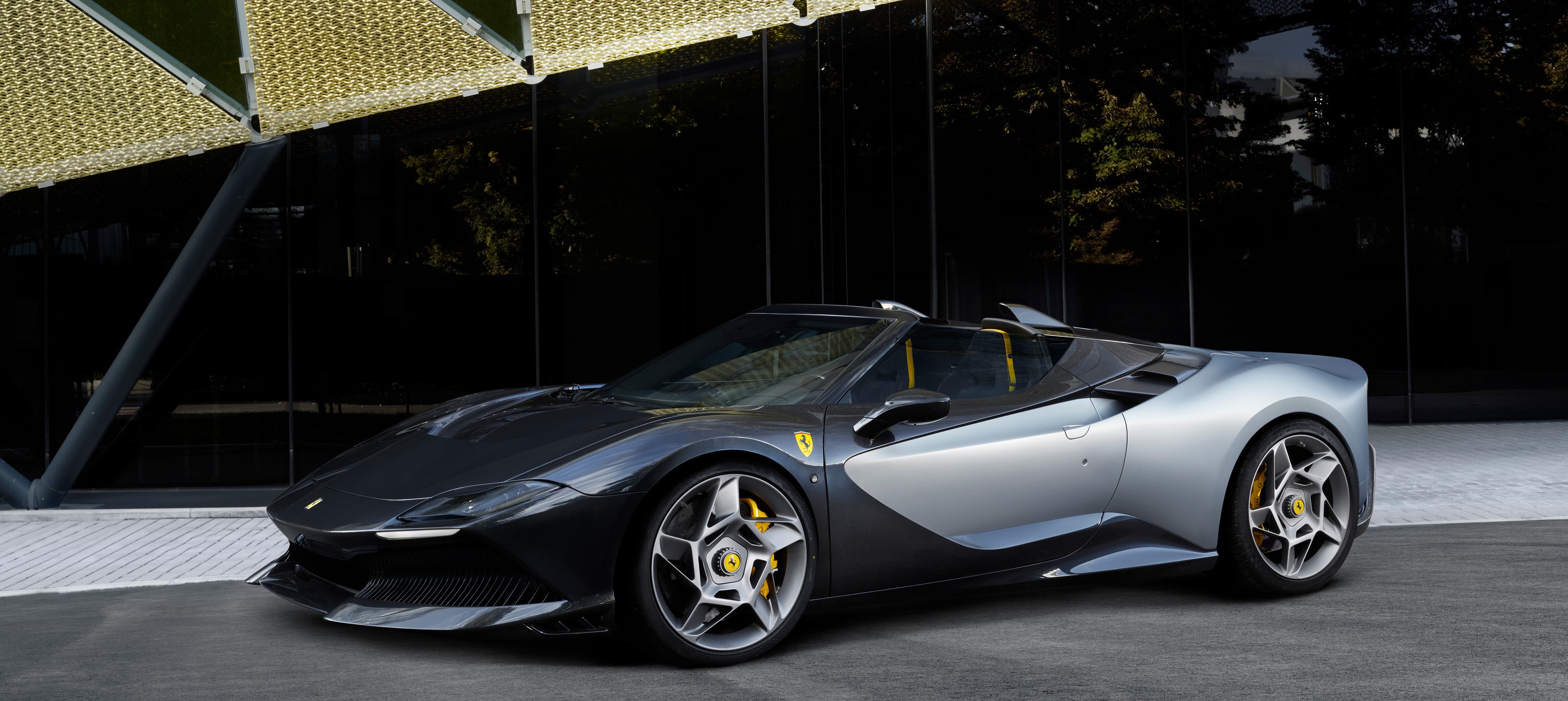 I cerchi direzionali a cinque razze sono esclusivi di questa vettura e rappresentano una rivisitazione in chiave moderna dei classici cerchi a stella delle Sport Prototipi Ferrari, nonché della leggendaria F40. Il loro aspetto generale pieno si intreccia sapientemente a modellati profondi e ampie forature di alleggerimento.