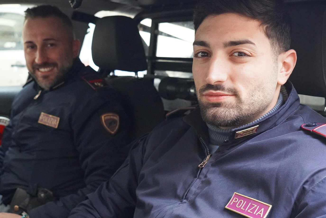 Quando i poliziotti (in foto due dei quattro agenti intervenuti) sono arrivati hanno subito notato le luci accese in una stanza dell’abitazione dalla quale sarebbero provenuti quei colpi sordi cadenzati.