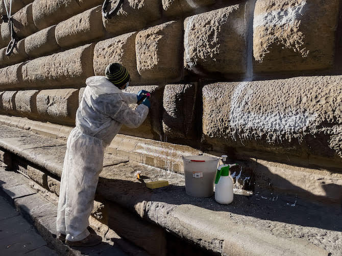Firenze: rinvenuta una grande scritta in vernice bianca sulla facciata di Palazzo Strozzi