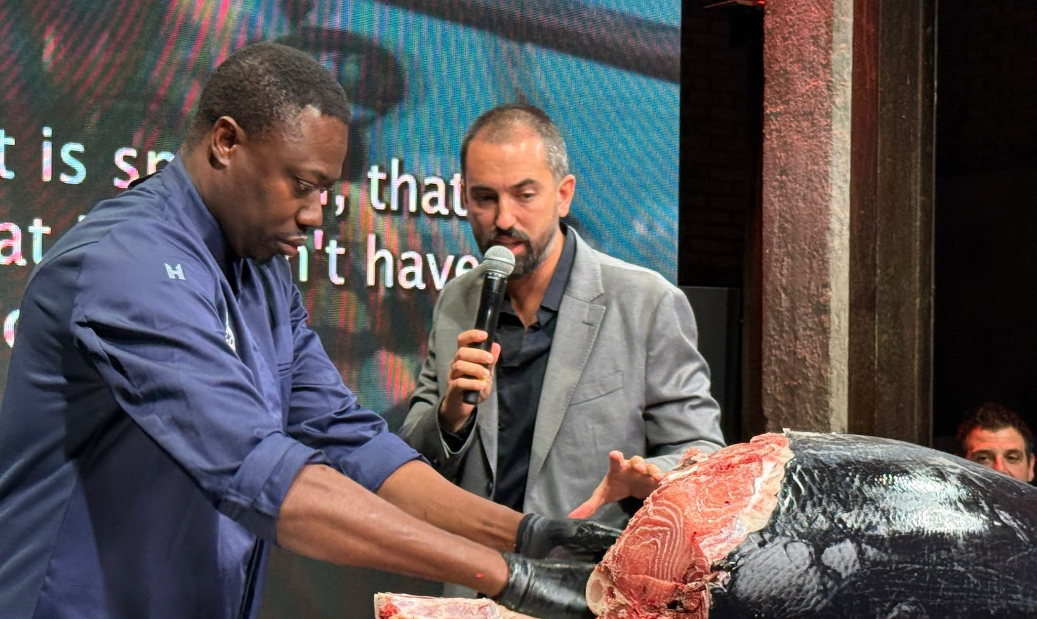 Ad aprire la serata, presentata da Juan Grau, Direttore Marketing di Balfegó, e Lucia Portillo, Sales Manager Europe Balfegó, è stato lo scenografico rituale kaitai, l’arte giapponese di tagliare il tonno. Un esemplare di circa 166 chili, selezione Balfegó, è stato sfilettato proprio di fronte agli occhi dei partecipanti che hanno avuto la possibilità di ammirare da vicino l’antica arte e la grande maestria nipponica.