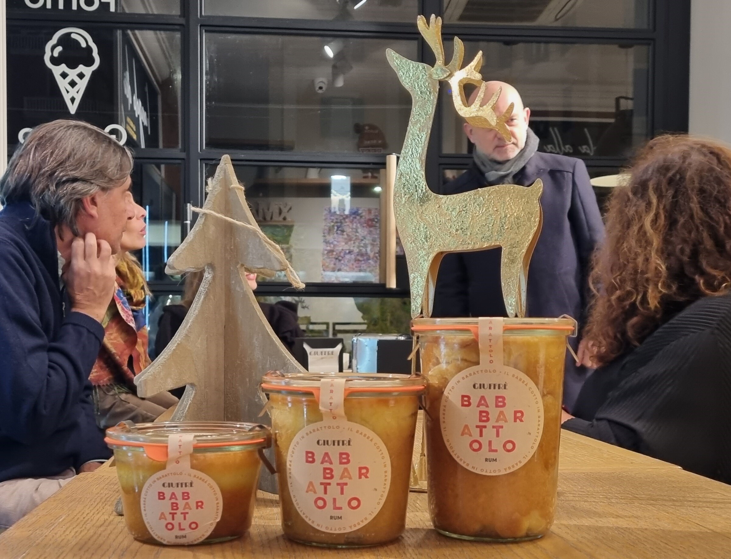 Ad aprire la scena altre specialità dello chef, a cominciare dal babà in vasocottura accompagnato da diverse creme squisite o gusti di gelato. Babà di una pasta particolarmente soffice e con una bagna estremamente equilibrata che permettono a questa delizia di combinarsi molto bene con diversi sapori cui Giuffrè ha voluto accompagnarlo, dalla golosa ma leggera crema di gianduia, alla delicata e profumata crema di zabaione - servita poi anche calda come vera e propria bevanda -, via via fino ai più inebrianti gusti di gelato, come il vivace mandarino anch’esso protagonista del periodo natalizio.