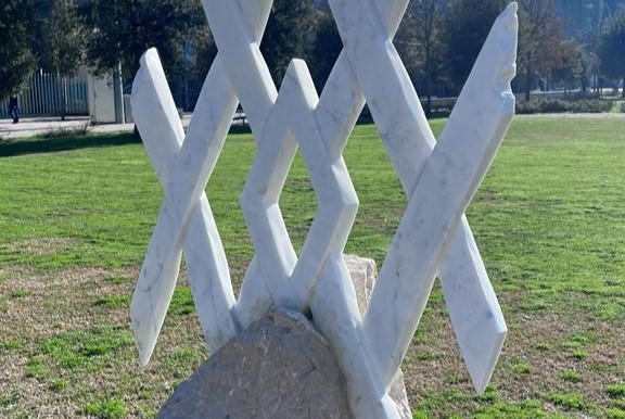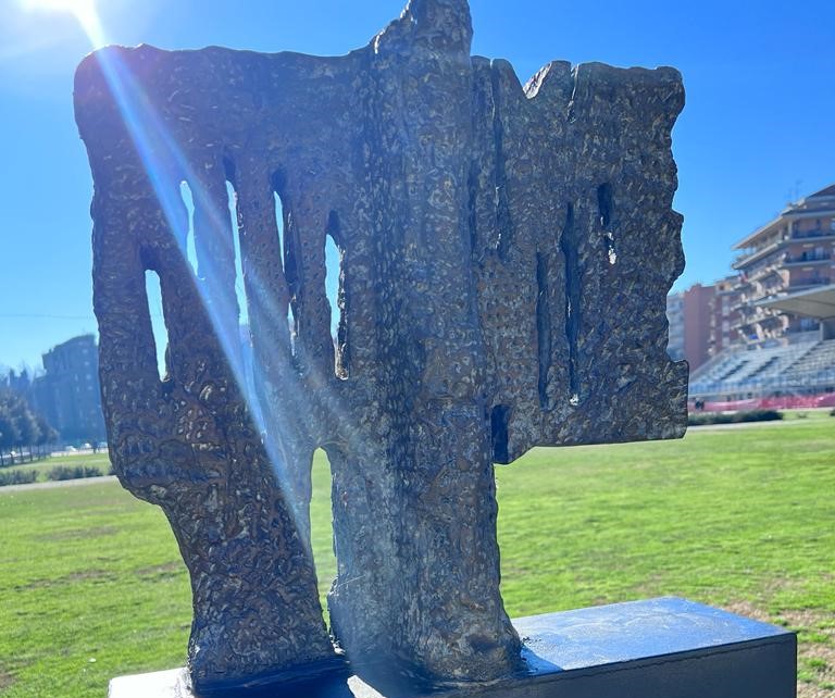 Di Enrico Roberti “L’Espressione del Libero Arbitrio” in ferro, del 2021, opera che è stata esposta anche nella Biennale di Arte Contemporanea del 2023 ad Anagni; di Leonardo Antonucci “Immutabili Legami”, in marmo di Carrara, del 2023, che l’affianca contribuendo a ribadire l’importanza della figura geometrica nella nuova tendenza dell’arte internazionale. Luciano Sarracino, con “La Chiave”, bronzo del 2016, propone un elemento importante della sua ricerca portata avanti anche con una scultura che è stata installata presso l’ospedale di Frosinone. Pierluigi Proietti, con “Il Calciatore”, acciaio commerciale del 2022, torna al tema originario del Matusa, proponendo una doppia immagine di quelli che sono stati i primi protagonisti a vivere i campi verdi del vecchio stadio di Frosinone.