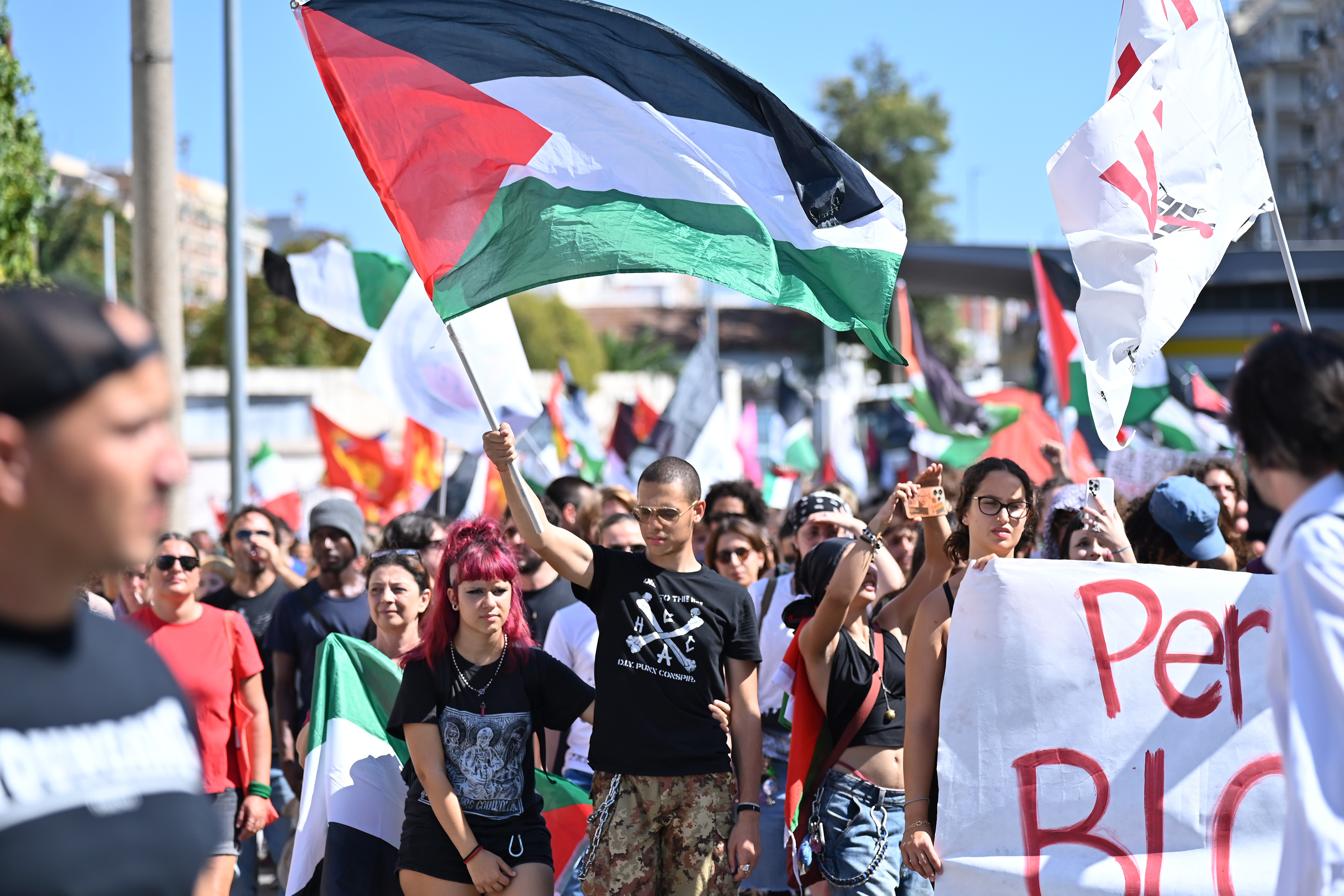 A Bari, almeno 10mila persone hanno manifestato partendo dal Molo di San Nicola. Sotto lo slogan "Blocchiamo tutto, scendiamo in piazza per la Palestina contro il genocidio", i manifestanti sono passati simbolicamente davanti alla sede del consolato israeliano e hanno proseguito fino all'Estramulare Capruzzi. . "Siamo stati i primi a proclamare lo sciopero generale - ha spiegato Francesco Laterza, di Usb Puglia -. È la prima volta da anni che accade per motivi strettamente politici". Alla mobilitazione si uniscono anche Cobas, Sbg e Cub. "Manifestiamo per fermare il genocidio del popolo palestinese - prosegue - e in sostegno alla nave Flotilla sulla quale si trova anche un nostro delegato sindacale" "Ma - ha evidenziato - ci sono anche ragioni lavorative, perché siamo contrari all'economia di guerra sostenuta dal governo, sarebbe necessario pensare a serie politiche del lavoro, alla sicurezza e ai salari". In Puglia ci sono state manifestazioni anche a Taranto (presidio in piazza della Vittoria) e a Lecce (presidio in piazza Sant'Oronzo).