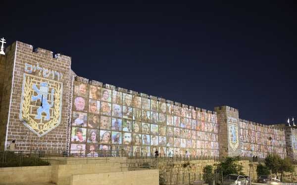 Gerusalemme si illumina con le immagini degli ostaggi rapiti da Hamas