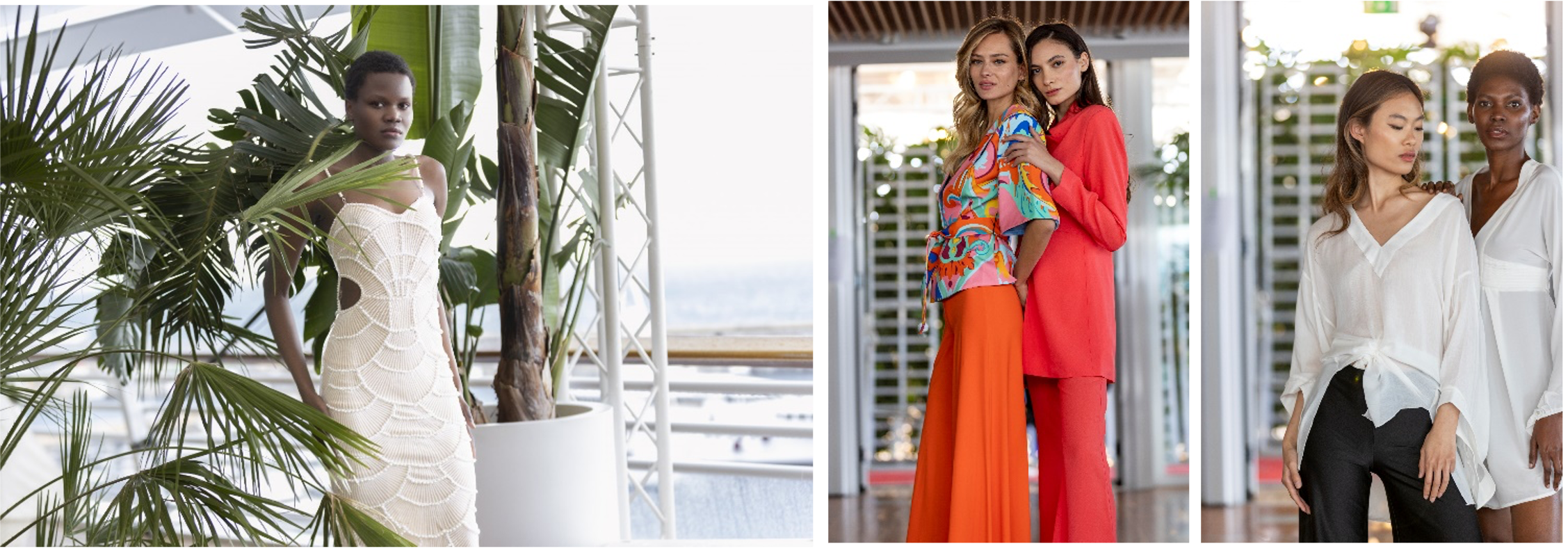 Alle giacche Pushkar sono stati abbinati pantaloni in tinta unita. Il parterre presente allo Yacht Club di Monaco ha potuto ammirare anche tailleur composti da giacche e pantaloni, dal taglio geometrico, realizzati in tinta unita con una palette di colori pastello. Non potevano mancare gli abiti pensati per le occasioni speciali con scollature e tagli cut-out studiati per mettere in risalto la silhouette femminile, impreziositi da ricami con perle ton sur ton e realizzati in tre colori diversi: bianco, nero e lilla. E ancora, il tradizionale bianco, simbolo di eleganza, per la casacca abbinata al pantalone nero, il mini abito in lino naturale e il completo short con applicazioni di fiori tinta su tinta abbinato al kimono. Infine, chiude la sfilata il caftano nero dalle maniche a godet, con spacchi laterali e dalle trasparenze romantiche.