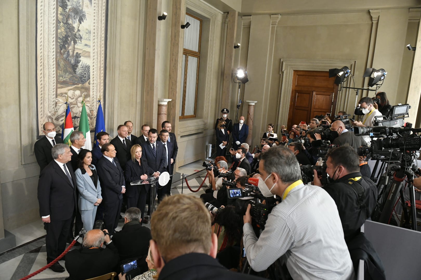 Sono durate in tutto 11 minuti, stamani, le consultazioni al Quirinale per il centrodestra, relative al nuovo governo. Al termine, solo Giorgia Meloni ha preso la parola, per cui non c'è stato nessun intervento da parte di Silvio Berlusconi.