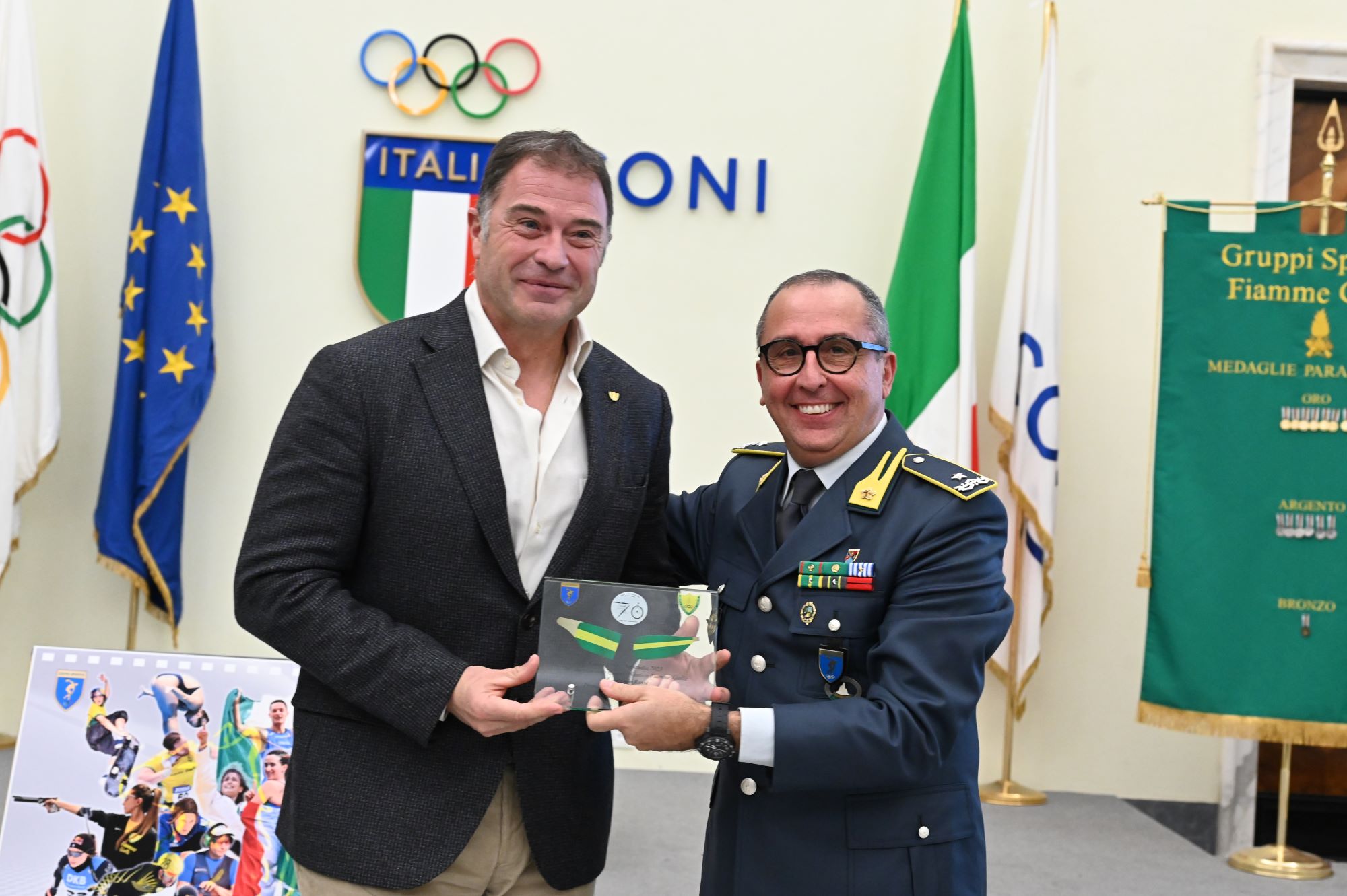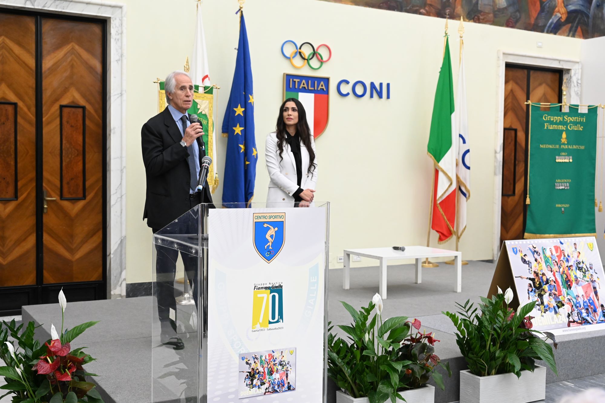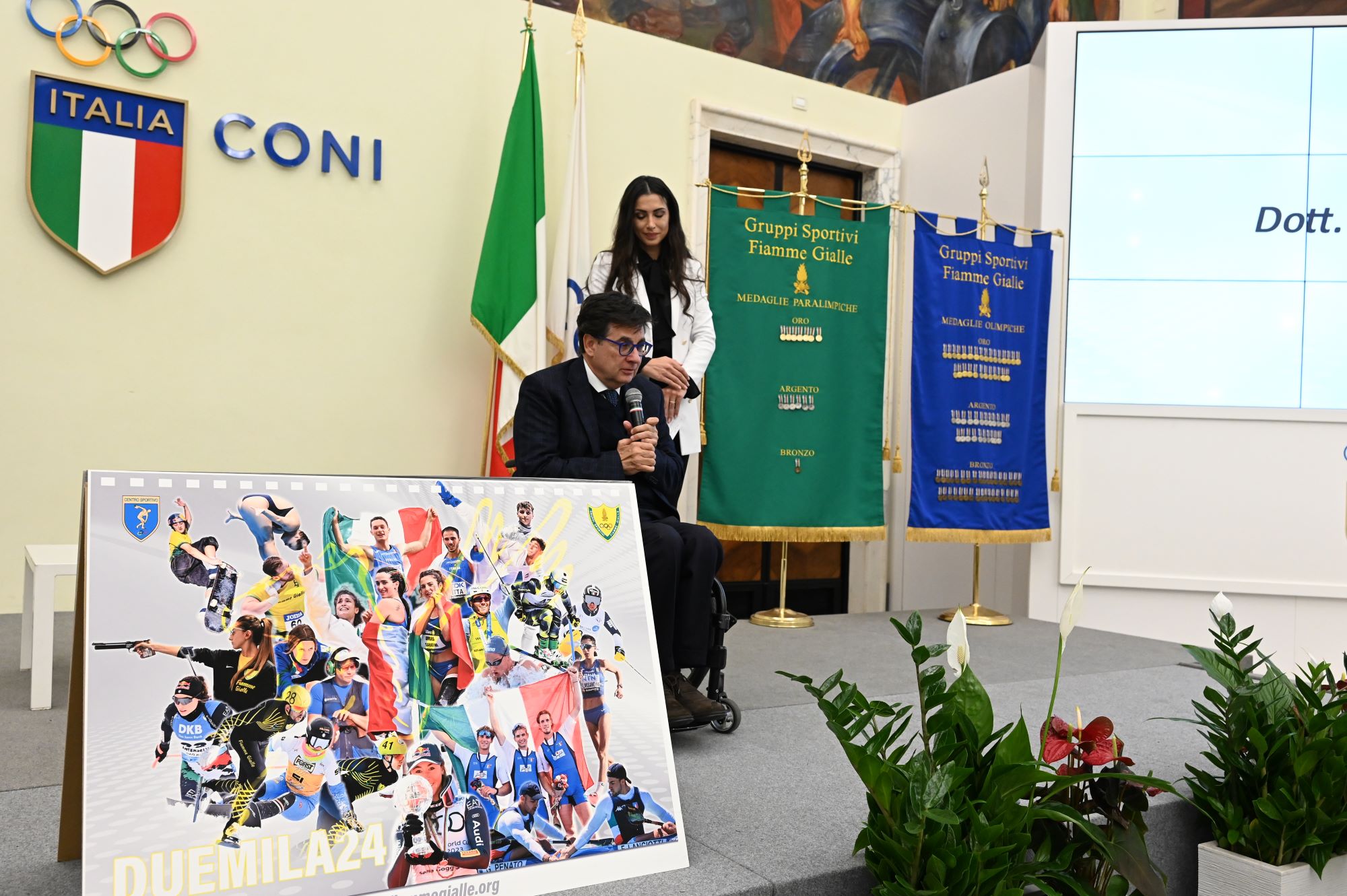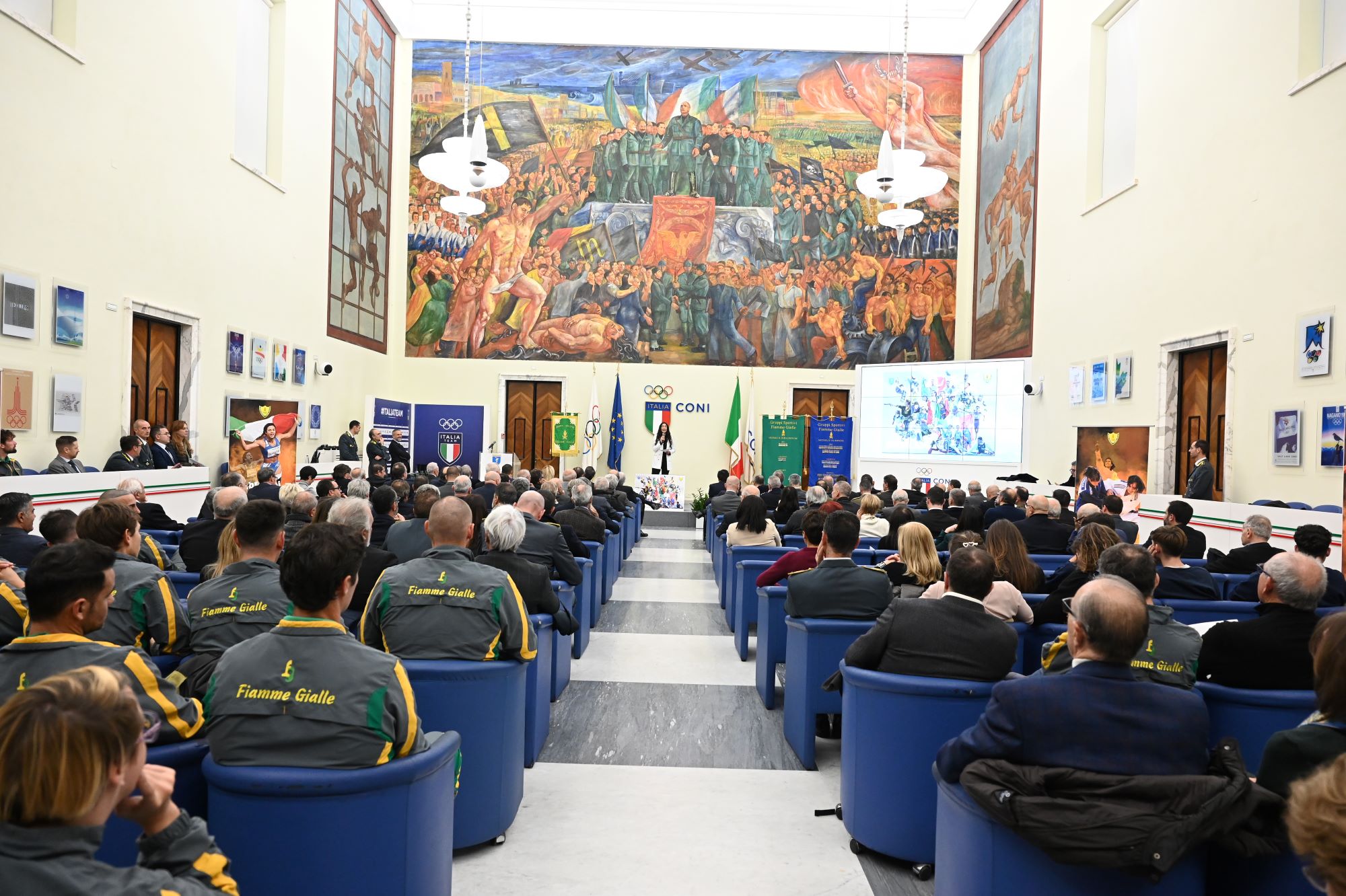 E’ seguito l’intervento del Presidente del CONI Giovanni Malagò che, emozionato dal docufilm, ha fatto gli onori di casa salutando un Salone d’Onore gremito e ha sottolineato come “le Istituzioni, le Fiamme Gialle hanno il diritto e il dovere di raccontare la propria storia, sperando che i giovani possano responsabilizzarsi maggiormente vedendo queste toccanti immagini. Siamo molto riconoscenti e grati per quello che avete fatto non solo dal punto di vista dei risultati sportivi, ma anche per l’esempio che date. Vi ringrazio per aver scelto ancora una volta il Salone d’Onore del CONI, con un grande augurio per il 2024, sperando tra un anno di poter essere ancora più riconoscenti”.