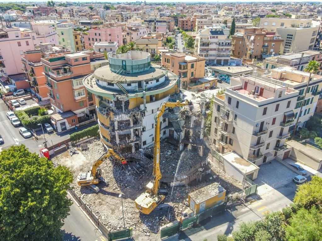 Roma, è terminata pochi giorni fa la demolizione dell’Hotel Giotto in Via Cardinal Passionei, da parte della ditta demolitrice Tanningher.