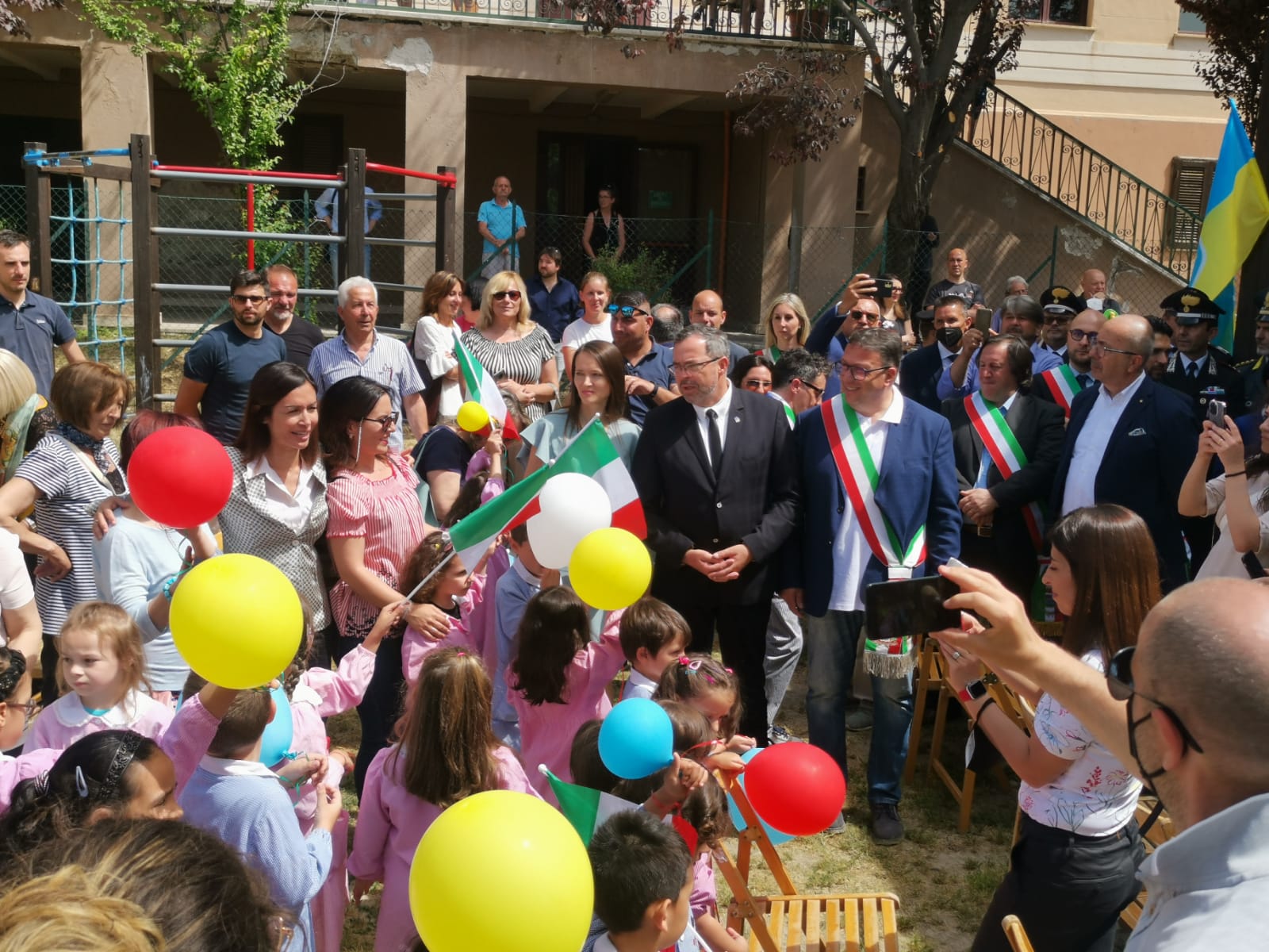Eccezionale accoglienza per il ministro per il Sud e la Coesione Territoriale, Mara Carfagna, e l’ambasciatore ucraino presso la Santa Sede, Andrii Yurash, a Cerchio (AQ), il borgo abruzzese che per primo ha accolto 40 minori ucraini, allestendo un centro di accoglienza proprio nella ex scuola elementare del paese.