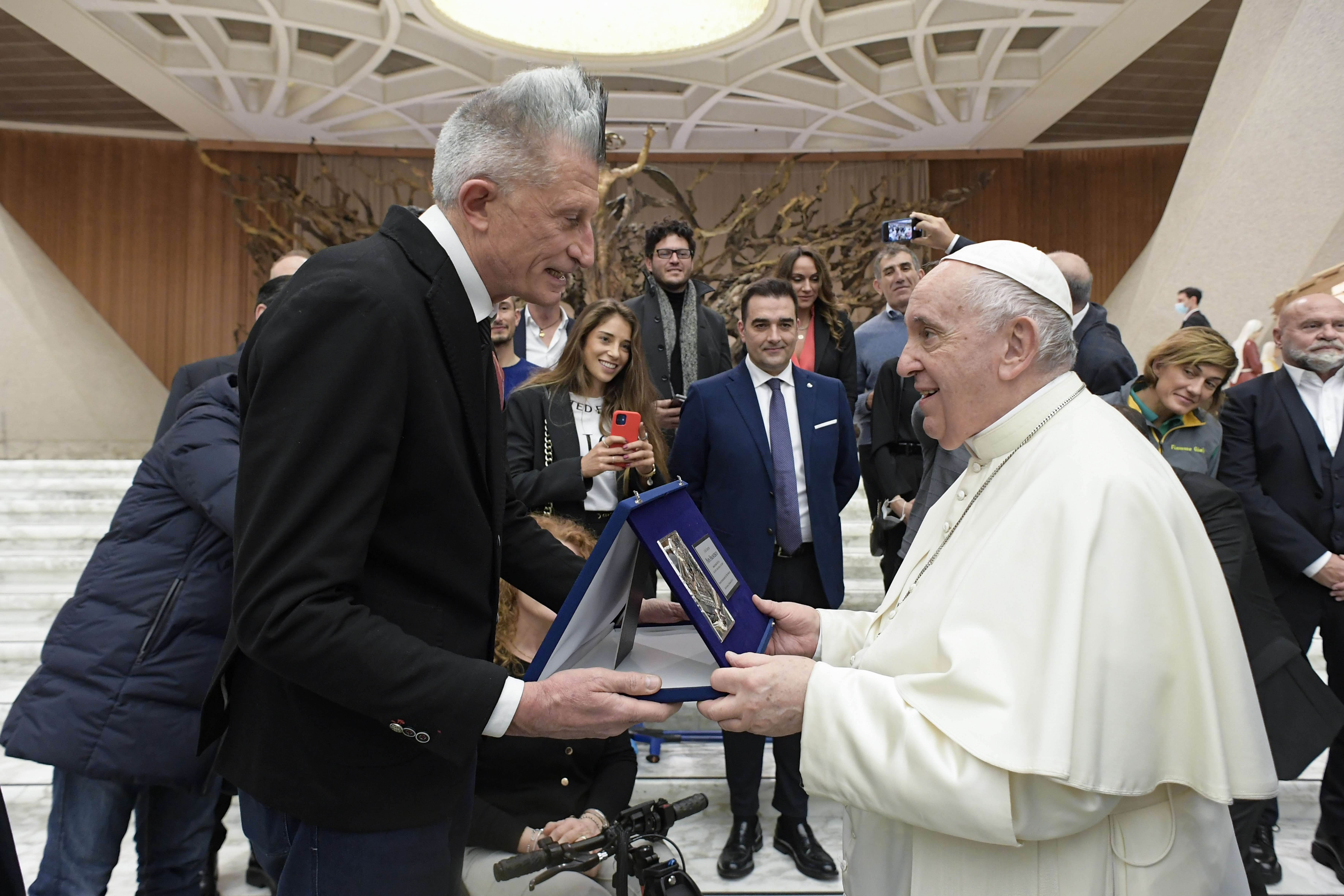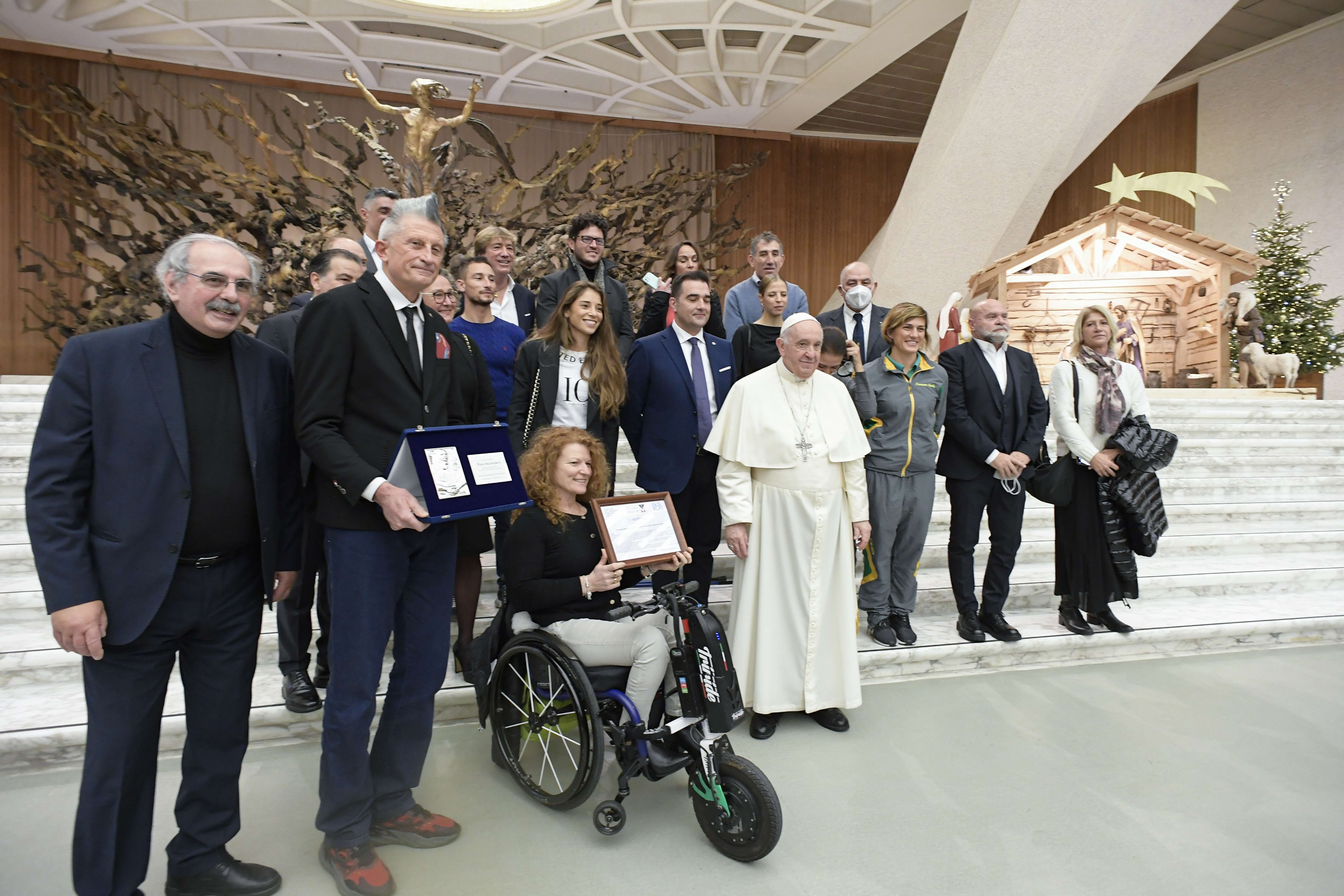 Questa mattina, nella maestosa cornice della Sala Paolo VI, l’associazione Premio Internazionale Fair Play ha ricevuto l’onore di essere accolta in udienza dal Santo Padre, insieme a una delegazione di ambasciatori del Fair Play, al vicesindaco di Castiglion Fiorentino, Devis Milighetti, e a una rappresentanza del Gruppo Farmaceutico Menarini, da nove anni title sponsor della manifestazione.