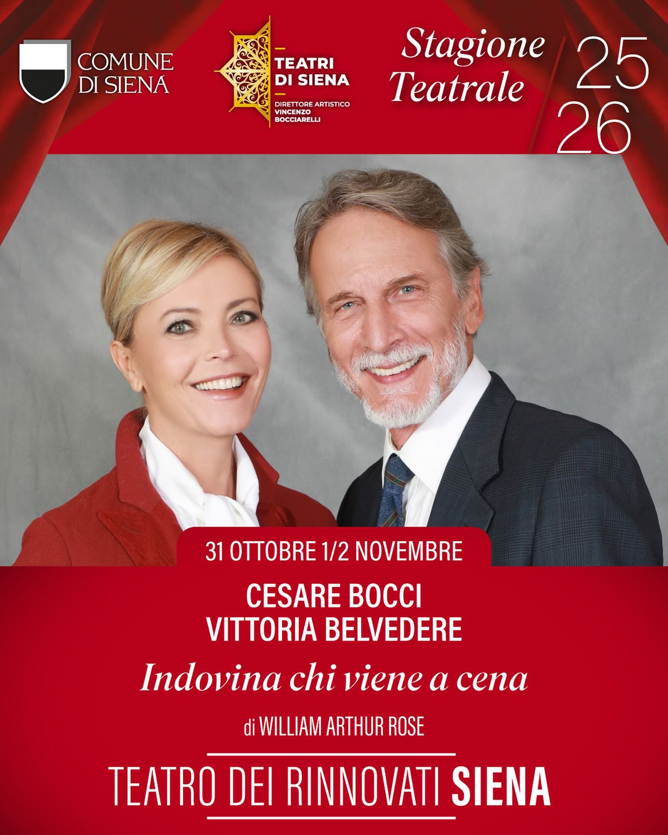 “Questo straordinario sold out è la conferma che la città di Siena ha voglia di grande teatro, di qualità e contenuto,” ha dichiarato Vincenzo Bocciarelli, attore e direttore artistico dei Teatri di Siena. “Siamo orgogliosi di accogliere sul nostro palcoscenico due interpreti del calibro di Cesare Bocci e Vittoria Belvedere, che porteranno emozione, eleganza e profondità in una commedia intramontabile. Il pubblico – ancora una volta – ha risposto con un calore che ci riempie di gratitudine e ci sprona a proseguire su questa strada di bellezza e cultura condivisa.”