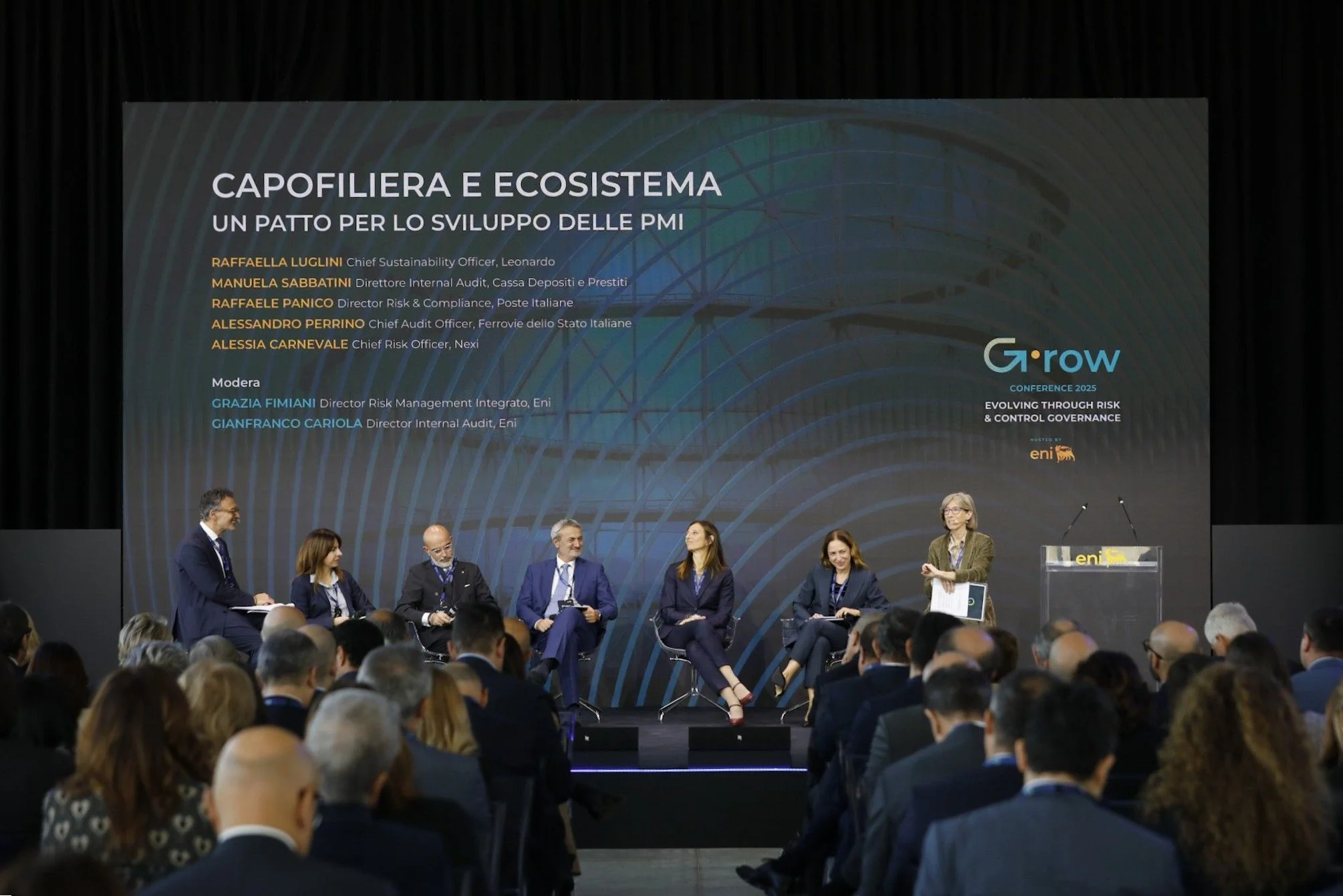 I dirigenti della Leonardo hanno partecipato alla "G∙row Conference 2025 – Evolving through Risk & Control Governance", l’evento organizzato da Eni per presentare G∙row, l’alleanza tra imprese e istituzioni creata con l’obiettivo di promuovere una governance responsabile, diffondere buone pratiche di gestione dei rischi e costruire insieme un ecosistema industriale più solido, trasparente e sostenibile.