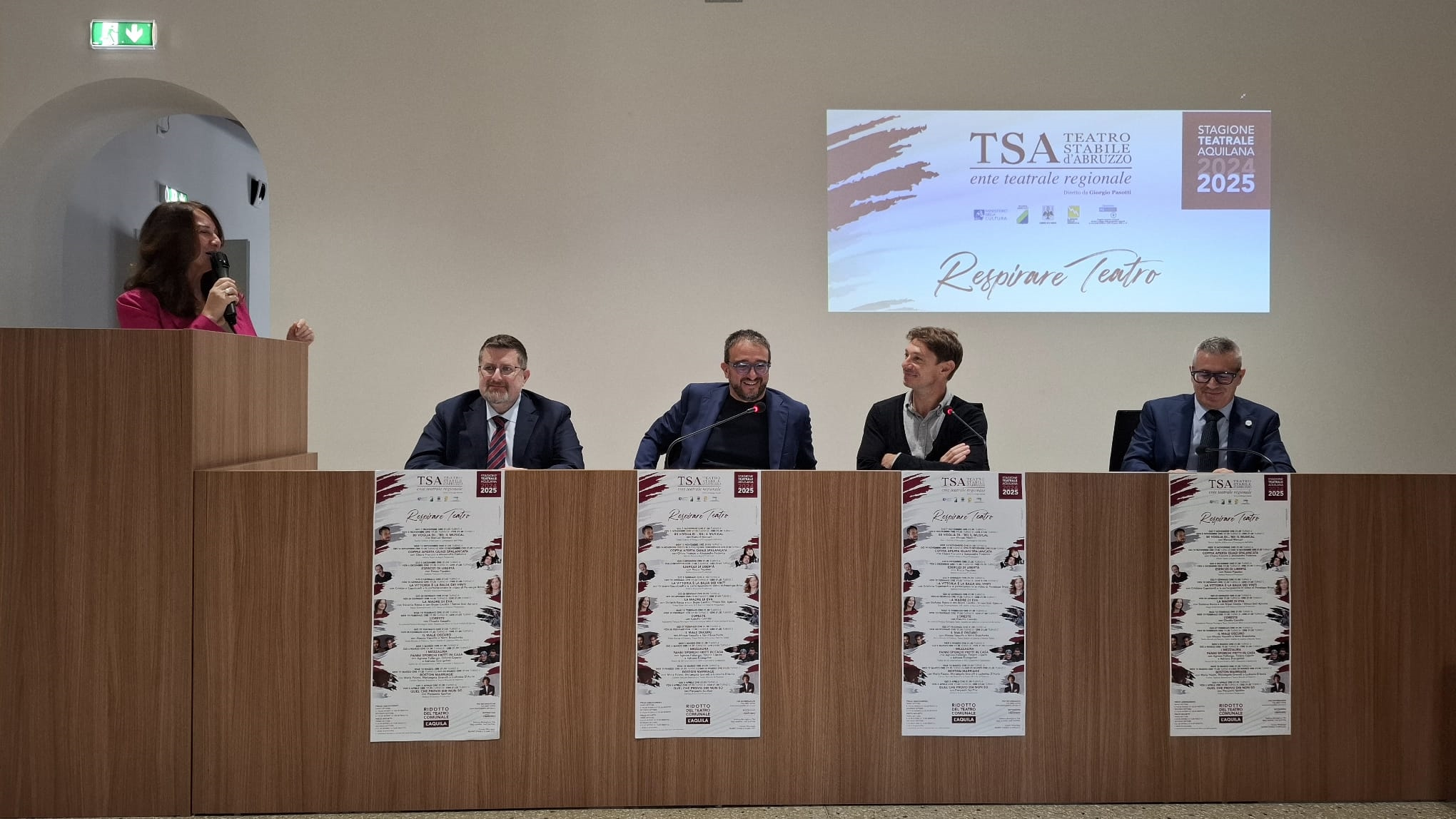 ”Credo sia di ottimo auspicio salutare la prima stagione del Pasotti 2.0. - saluta il Sindaco della Città dell’Aquila Pierluigi Biondi- Recentemente il direttore del TSA Giorgio Pasotti è stato rinnovato nella sua funzione ed io gliene sono grato perché è un vero professionista, un artista molto impegnato che però non manca di far sentire la sua presenza in città. Ci confrontiamo a più riprese, siamo già a lavoro per ragionare su progetti speciali.