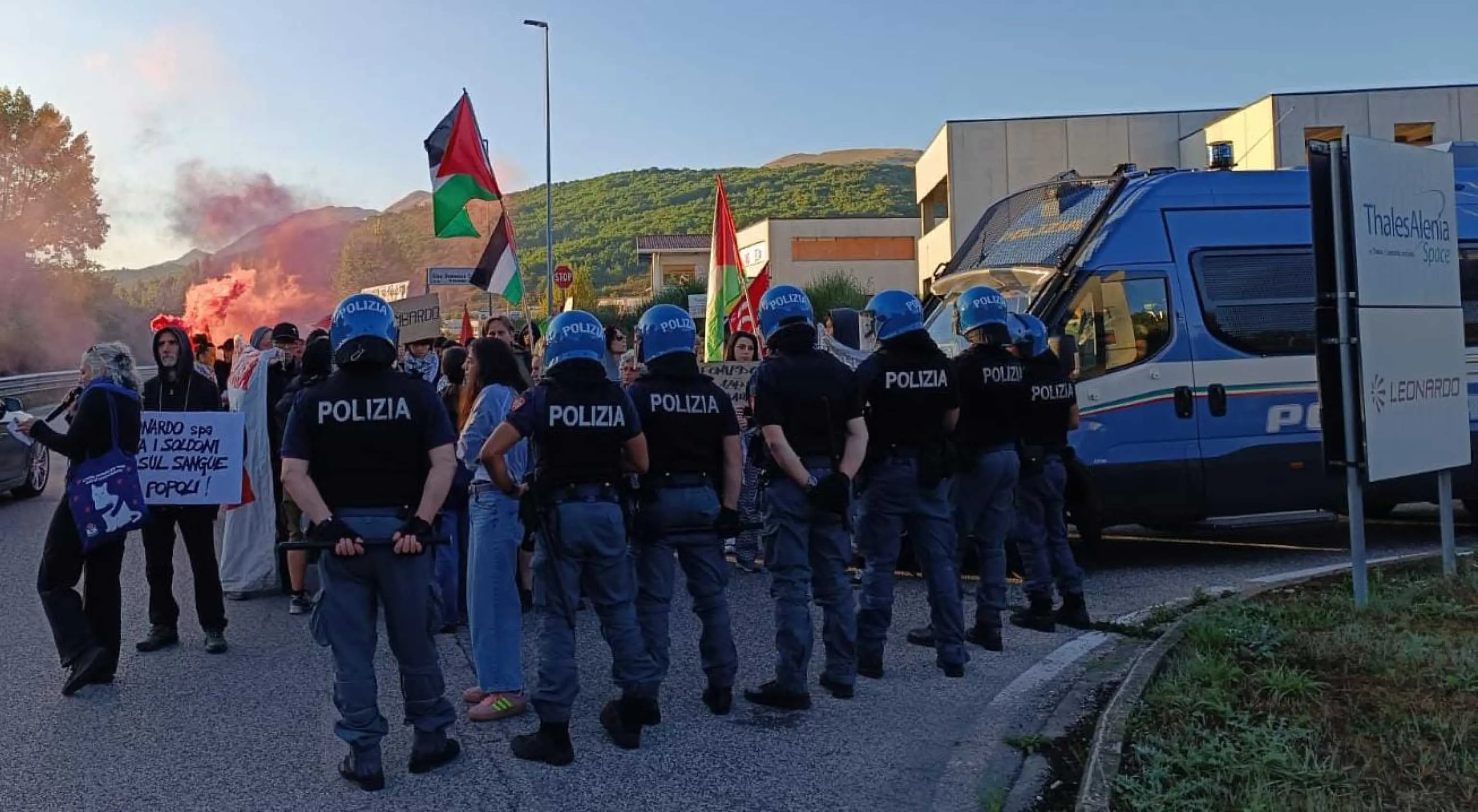 Alcuni manifestanti ProPal stanno bloccando da questa mattina l'ingresso principale alle sedi di Leonardo e Thales Alenia Space, nella zona industriale ovest dell'Aquila. Alla protesta stanno partecipando attivisti provenienti da tutto l'Abruzzo, con azioni di volantinaggio cominciate il mese scorso.