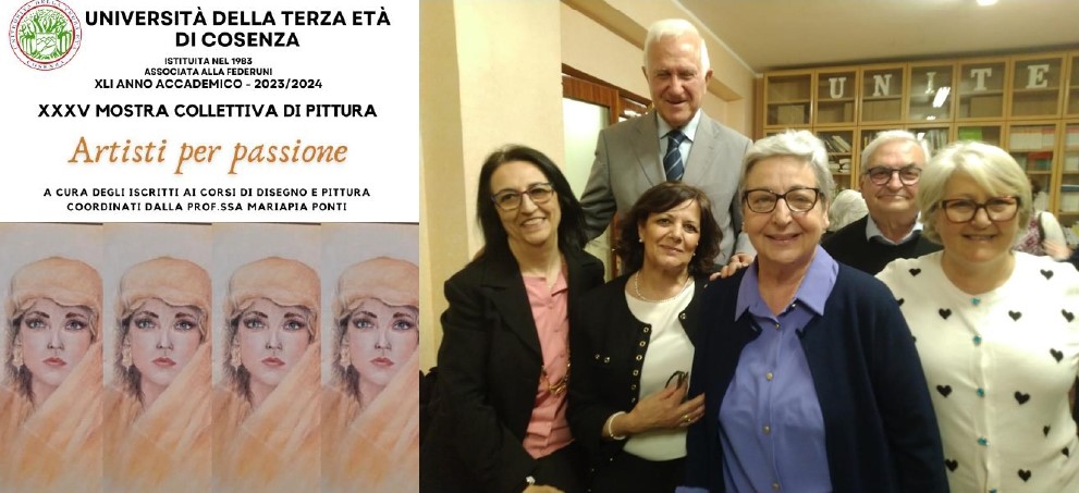 “Tutto quello che passa attraverso cuore, anima e mente, successivamente arriva alla mano. E quello che ne esce è arte. La Mostra Collettiva degli artisti ospitata nel prestigioso Museo dei Brettii e degli Enotri- scrive sul catalogo di presentazione Maria Pia Ponti, che è la direttrice del corso di Pittura- è dedicata alla passione per l’arte, in particolar modo per la pittura. Passione sinonimo di vivo desiderio, di grande interesse, grande amore. Certi della caducità della vita non possiamo permetterci il lusso di rifiutare i piaceri che ci offre trovando il tempo da dedicare a noi stessi e ai nostri interessi”.